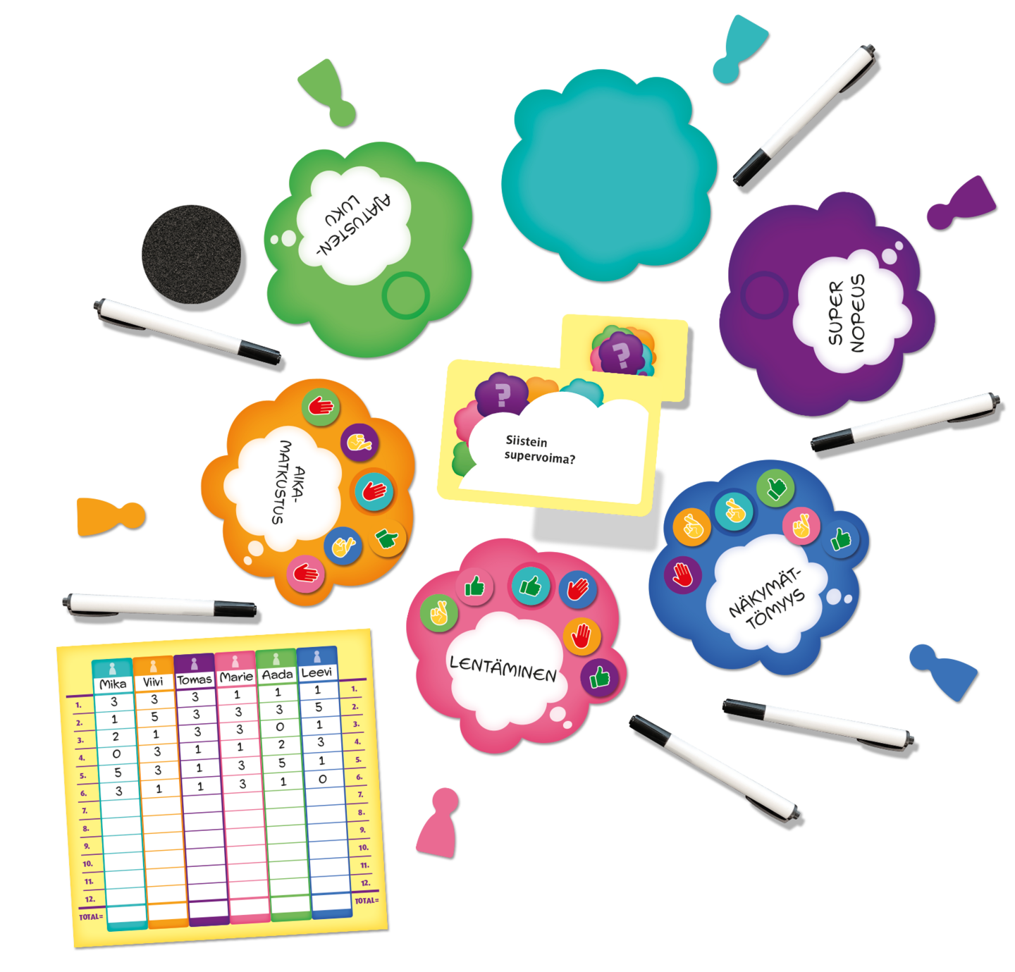 Kuinka hyvin oikeasti tunnet pelikaverisi? Vie ajatustenluku uudelle tasolle ja ota selvää! Lue kysymys ja kirjoita vastauksesi ylös, mutta älä paljasta sitä muille. Nyt muut pelaajat paljastavat omat ehdotuksensa, ja sinä laitat ne järjestykseen. Valitse, mikä ehdotuksista osui lähimmäksi ja mikä jäi kauimmaiseksi. Älä unohda hämätä! Pystyvätkö pelikaverisi lukemaan ajatuksiasi ja laittamaan kiekkonsa samaan järjestykseen? Vuoden Peli 2024 Partypelit voittaja! Valmistettu Suomessa. Ikäsuositus: 12+ v. Pelaajien määrä: 3-6. Pelin kesto: 20+ min.