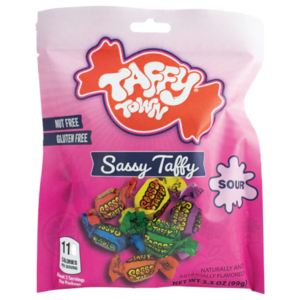 Unohda sitkeät ja hampaissa tuntuva karkit. Taffy Town Sassy Taffy on maailmankuulua, ilmavan pehmeää toffeeta, joka kirjaimellisesti sulaa suuhun. Mutta tässä 'Sassy'-versiossa on koukku: se alkaa makeana, mutta iskee sitten tajuntaan sähköisellä kirpeydellä. Se on kuin vuoristorata kitalaellesi – täydellinen 99 gramman pakkaus niille, jotka kaipaavat karkiltaan vähän asennetta.