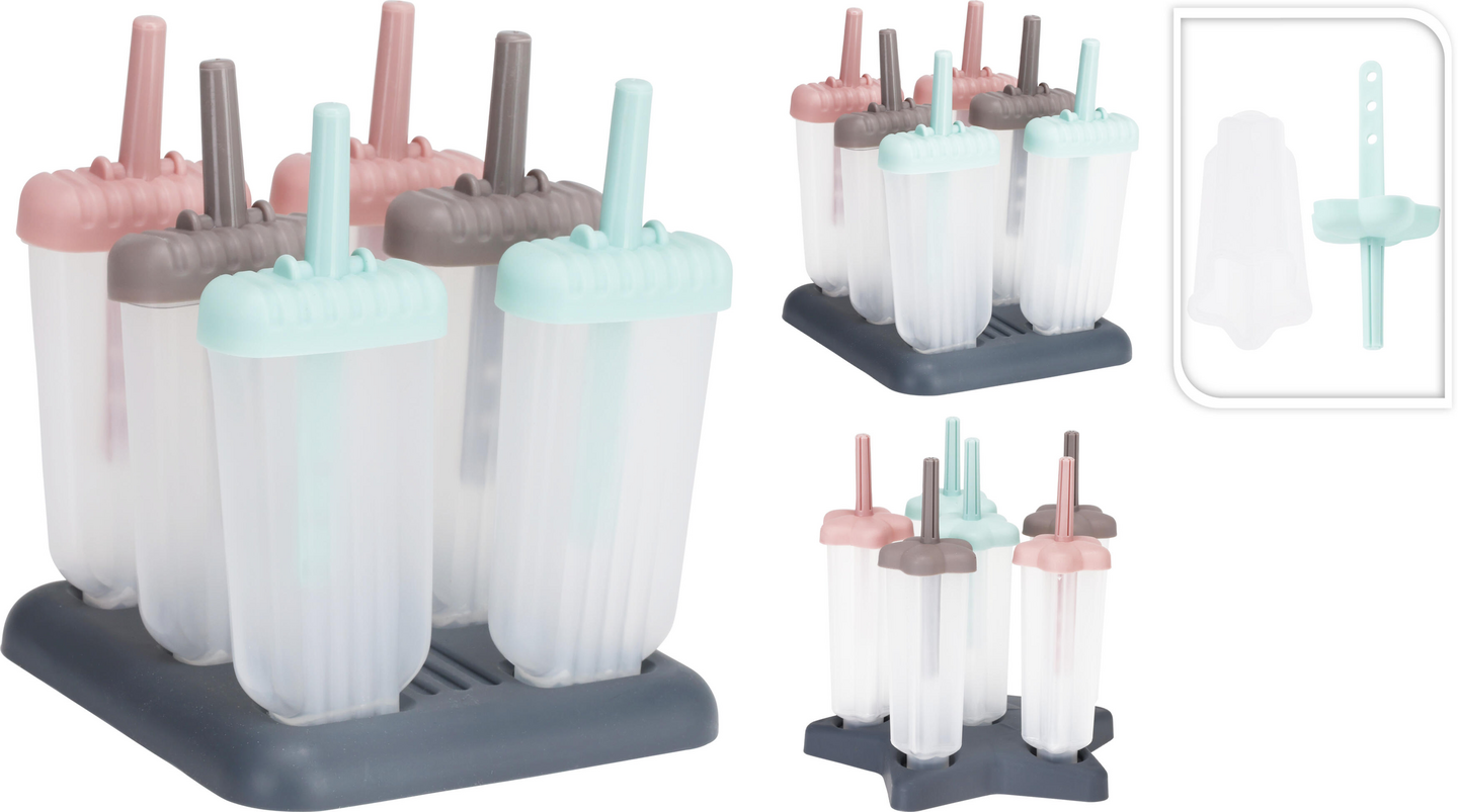 Tähden mallinen 6 kpl mehujää muotti telineellä. Mehujää muotti jossa mukana teline, jonka ansiosta muotit pysyvät hyvin pystyssä.