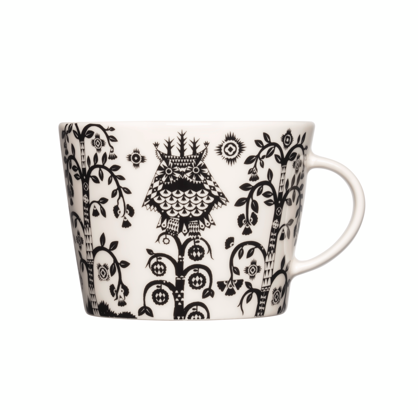 Muotoilija Klaus Haapaniemen taide ja Heikki Orvolan selkeä muotoilu yhdistyvät ainutlaatuisella tavalla 0,3L Taika-kupissa. Yhteensopiva 16 cm lautasen kanssa. 0,3L koko on täydellinen kaikkien kuumien juomien nauttimiseen. Mustan kuvioinnin yksityiskohtien runsaus korostuu kauniisti kupin valkoista taustaa vasten.