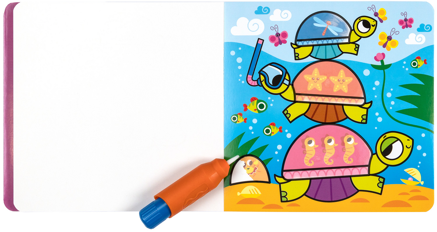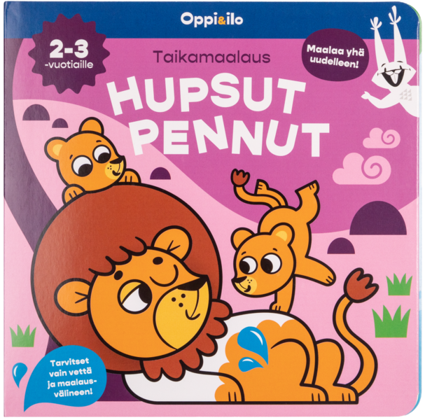 Mitä kaikkea hupsua eläinpennut ovatkaan keksineet?Valloittavaa maalauspuuhaa kaikkein pienimmille!Kasta vaikkapa kankaanpala tai pesusieni veteen ja maalaa sillä sivuja. Kauniit värit ja yksityiskohdat ilmestyvät sivuille kuin taiottuina. Kuivuttuaan värit häviävät kuvasta ja voit aloittaa leikin taas alusta!Puuhakirja sisältää 12 irrotettavaa sivua, jotka voi maalata vedellä kerta toisensa jälkeen.