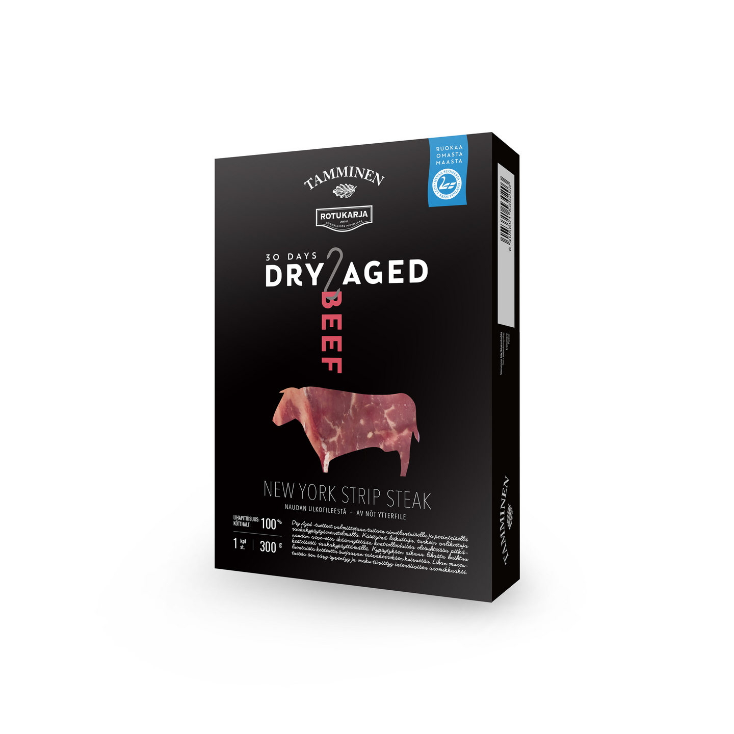 Tamminen Rotukarja naudan Dry Aged New York Strip Steak leikataan käsityönä antibiootittomasti ja gmo-vapaasti tuotetusta Rotukarja naudan ulkofileestä, sisältäen mehukkuutta korostavan makurasvareunuksen. Tämä luuton klassikkopihvi on täydellinen valinta sen luontaisen hienostuneen koostumuksen ja aromikkaan maun ansiosta. Raakakypsytetty taitaen 30 vuorokautta. Kypsennetään pistinpannulla paistaen voin tai kuumakestoisen öljyn kera tai vaihtoehtoisesti grillissä grillaten. Soveltuu käytettäväksi lämpimiin salaatteihin, alkuruokiin tai pääruoaksi lisukkeiden kera.