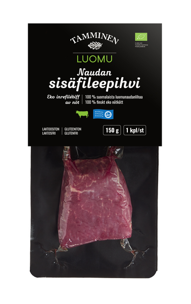 Tamminen Luomunaudan sisäfilepihvi leikataan ja viimeistellään käsityönä 100 % suomalaisesta luomunaudanlihasta. Maustamattomat sisäfilepihvit kypsennetään paistinpannulla paistaen voin tai kuumakestoisen öljyn kera ja niiden maku viimeistellään ripauksella suolaa ja mustapippuria. Soveltuu käytettäväksi pääruoaksi lisukkeiden kera.