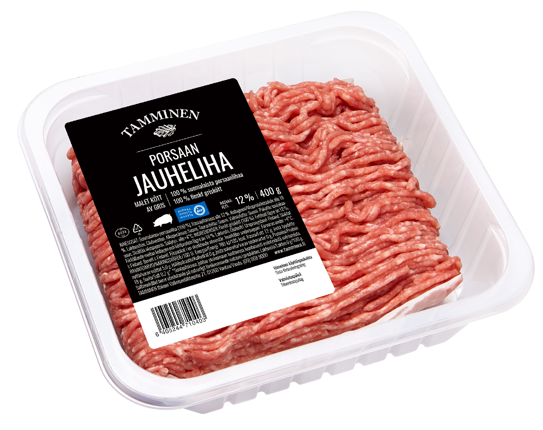 100 % suomalaisesta porsaanlihasta jauhettua jauhelihaa. Jauhelihasta valmistuu monipuolisesti niin kastikkeet, lihapyörykät, jauhelihapihvit kuin murekkeetkin.