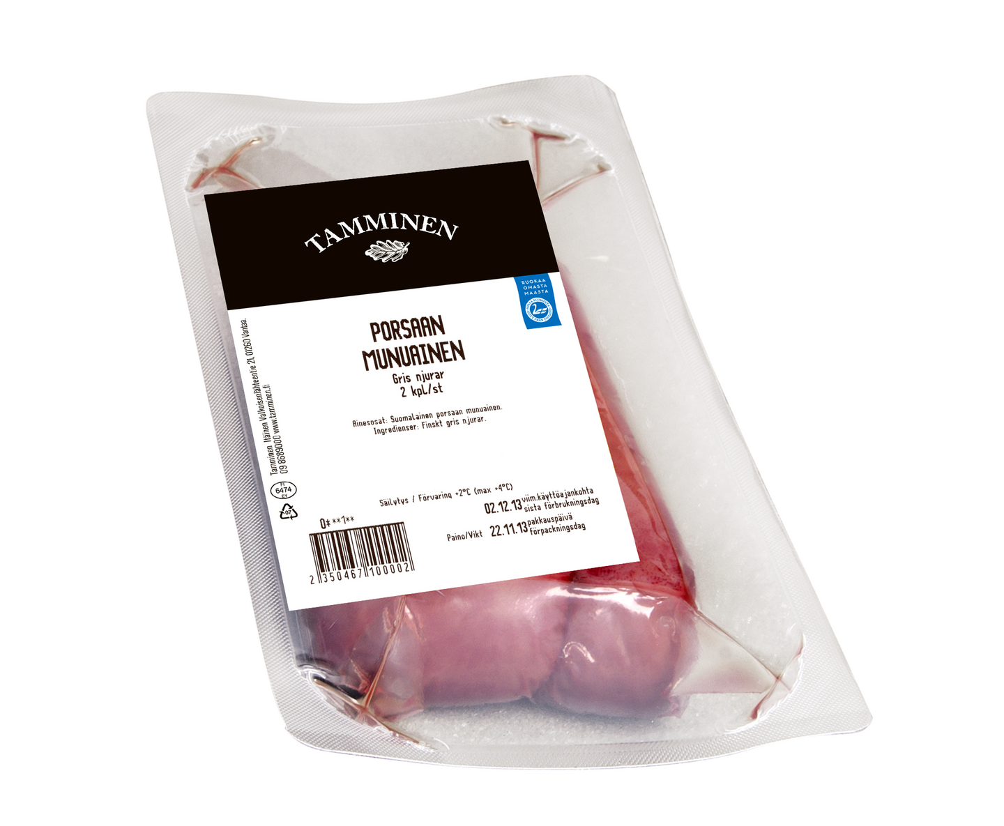 Tamminen Porsaan munuainen on 100 % suomalainen porsaan munuainen kahden kappaleen vakuumipakkauksessa. Yksittäisen tuotteen keskimääräinen paino on 300 g.