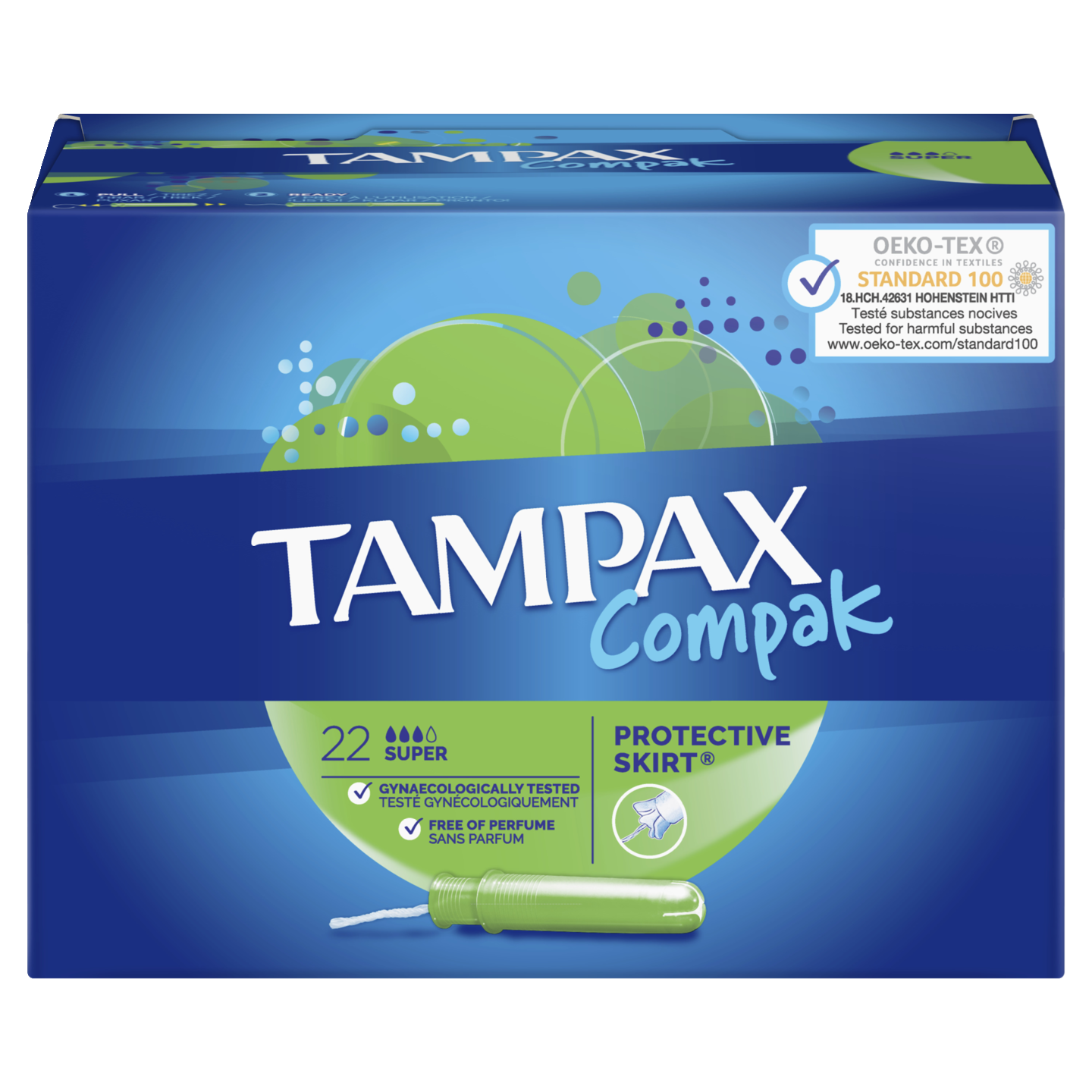 Tampax Compak -tamponissa on kompakti muovinen asetin, jonka pyöristetty pää tekee asettamisesta helppoa ja miellyttävää. Imukanavat imevät nesteen tamponin ytimeen ja suojaava helma auttaa ehkäisemään ohivuotoja, jotta saat huolettomat kuukautiset. Luotettava suoja ohivuotoja vastaan, jotta voit tehdä mitä haluat. Paras Tampax Compak -tamponi normaalista runsaaseen vuotoon.
