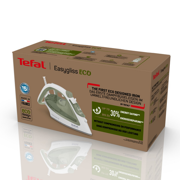 Easygliss Eco on suunniteltu vaatehuoltoratkaisuksi, jonka ympäristövaikutukset ovat tavallista pienemmät. Ekologisen suunnittelun ja jopa 30 % vähemmän energiaa kuluttavan Eco-tilan ansiosta tämä tehokas höyrysilitysrauta takaa sileän lopputuloksen ja kestävän laadun. Paras Durilium Airglide -pohjamme mahdollistaa kestäväksi suunnitellun suorituskyvyn, ja raudassa on nopean lämpenemisen takaava 2 800 W:n teho, jatkuva höyryntuotto jopa 260 g minuutissa ja muita parannettuja ominaisuuksia. Eco-tila säätää höyryä ja mahdollistaa silityksen, joka säästää jopa 30 % enemmän energiaa* *Eco-asetuksissa verrattuna maksimitilaan.