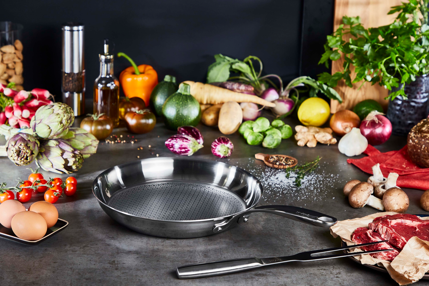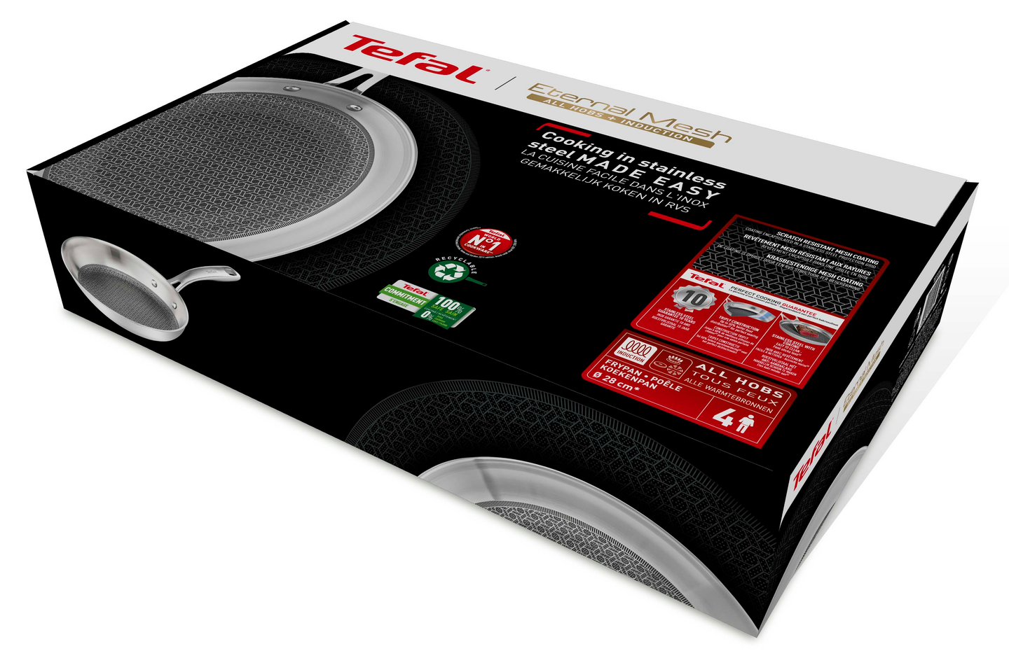 Tefalin Eternal Mesh -paistinpannu yhdistää ruostumattoman teräksen ominaisuudet tarttumattoman pinnoitteen etuihin, mahdollistaen täydellisen ruskistuksen ja helpon puhdistuksen. Kaikki tämä johtuu nerokkaasta, naarmuuntumattomasta mesh-pinnoitteesta. Mesh-pinnoite tarkoittaa että, ruostumattoman teräksen sisäpinnalla on hunajakennomainen kohokuvio, johon on kapseloitu tarttumaton pinnoite. Tämä varmistaa erinomaiset paistotulokset ja vähentää ruoan tarttumista paistinpannun pintaan. Paistinpannun ulkopinta on kiilloitettua ruostumatonta terästä.