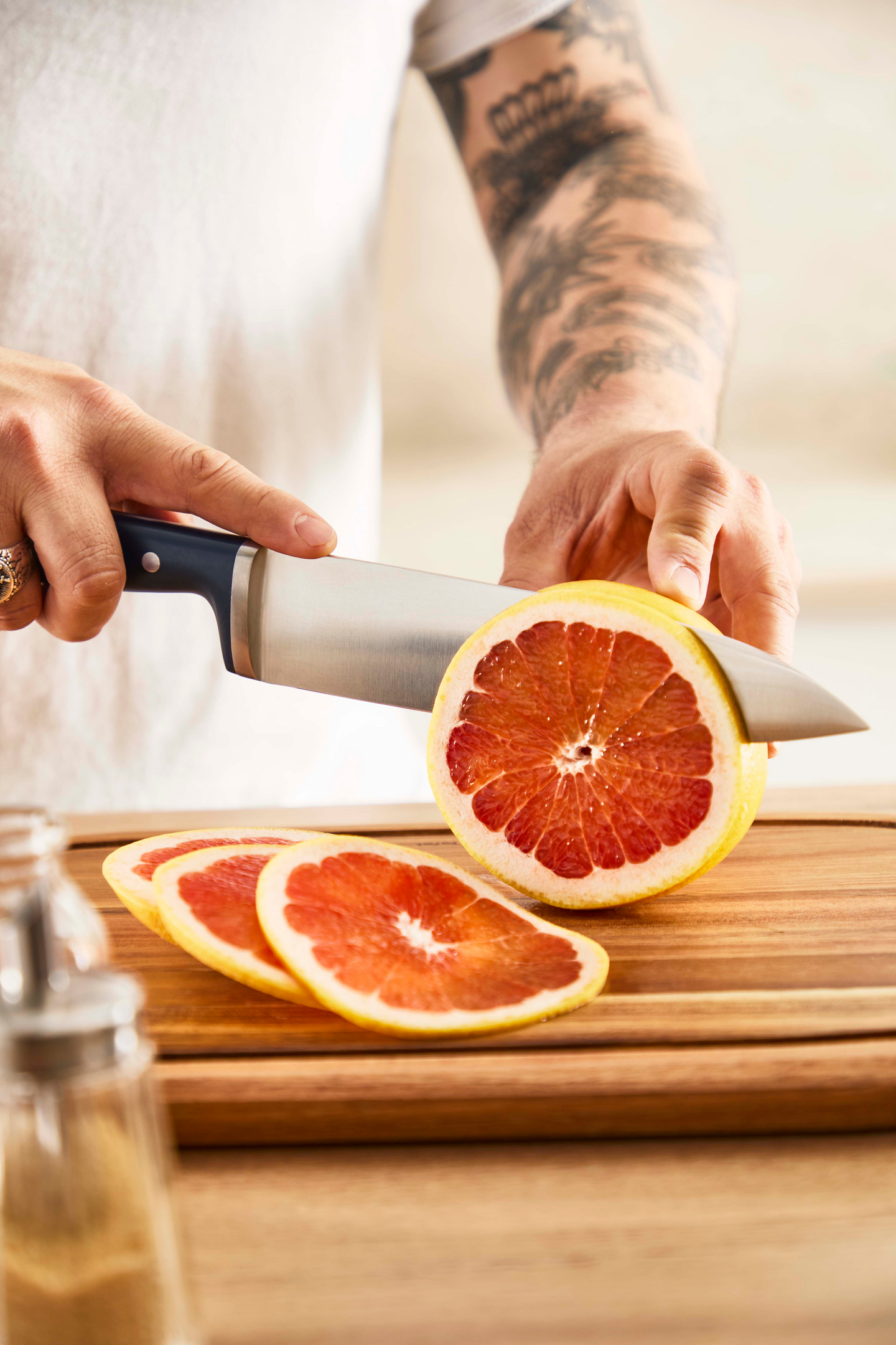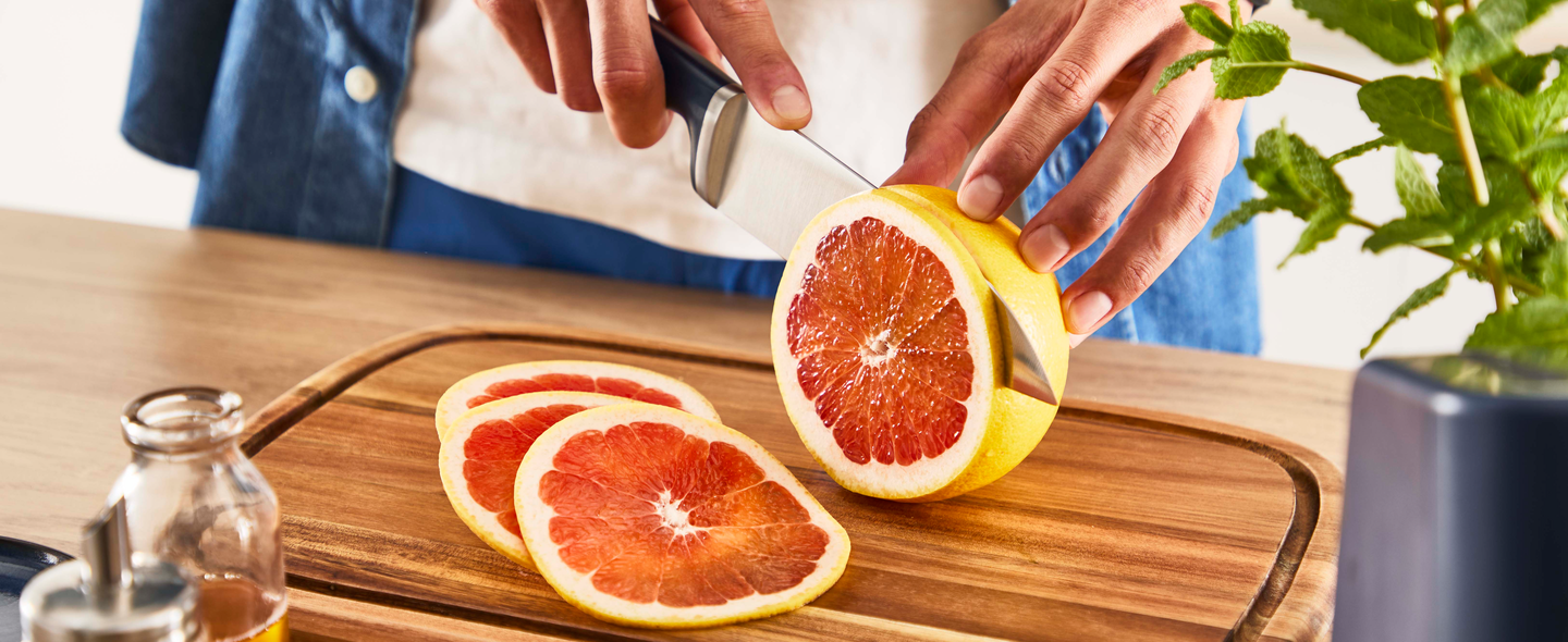 • Veitsi on huolellisesti tasapainotettu, joten se istuu käteen vakaasti ja leikkaaminen on miellyttävää