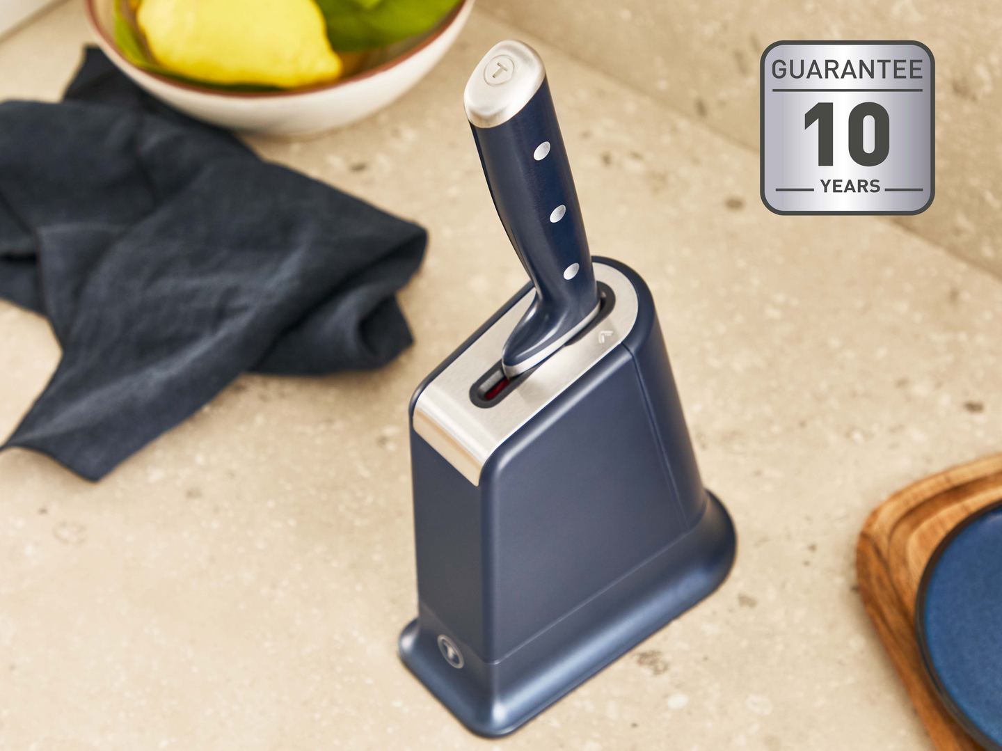 Sekä terälle että teroitusmekanismille myönnetään 10 vuoden takuu, joka kertoo luotettavasta laadusta ja kestävyydestä. Tämä veitsi on täydellinen valinta kotikokille, joka arvostaa veitsiä, jotka toimivat moitteettomasti päivästä ja vuodesta toiseen.