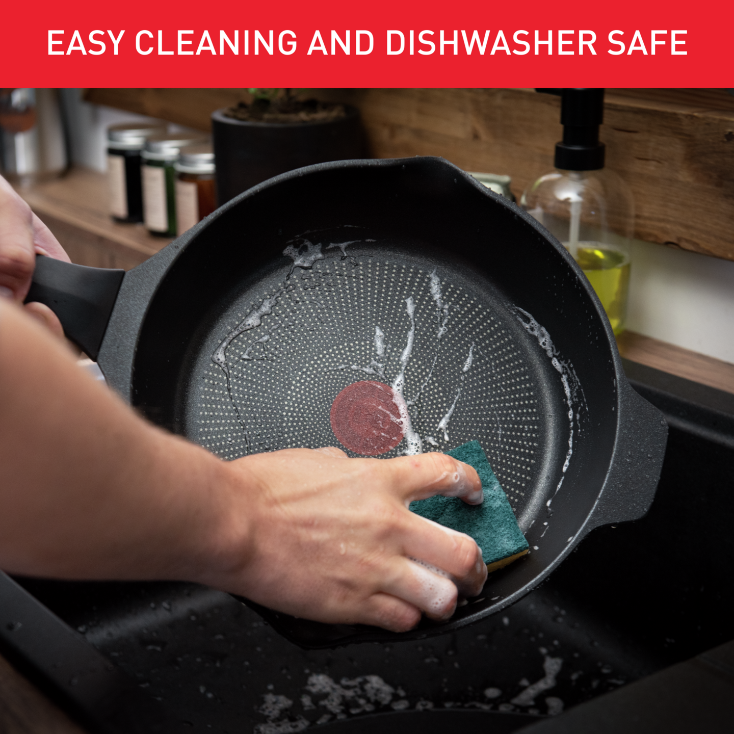 Robusto-sarjan tuotteet on valmistettu valetusta alumiinista, joka mahdollistaa tavallista paksumman pohjan ja reunojen rakenteen. Tämän ansiosta Robusto-keitto- ja paistoastiat säilyttävät lämmön erinomaisesti ja ruoasta tulee erityisen mureaa ja maukasta. Robusto-paistoastioden korkealaatuinen tarttumaton titaanipinnoite on vahvistettu ylimääräisellä pintakerroksella, joten se kestää jopa 3 kertaa pidempään verrattuna Tefalin vakiopinnoiteeseen. Kätevät kaatoreunat ja -nokat, käytännölliset kädensijat ja pystyssä pysyvä kansi helpottavat ruoanlaittoa. Tefalin älykäs Thermo-Signal™-lämpötunnistin vaihtaa väriä, kun pannu saavuttaa ihanteellisen paistolämpötilan. Näin saat helposti täydellisen paistopinnan, rakenteen ja maun. Sarjan tuoteet sopivat kaikille liesityypeille, myös induktiolle. Paistoastioissa on 100 % turvallinen tarttumaton pinnoite, eikä se sisällä PFOA:ta, lyijyä eikä kadmiumia. Kestää uunissa 175°C. Tuotteet ovat konepesun kestäviä.