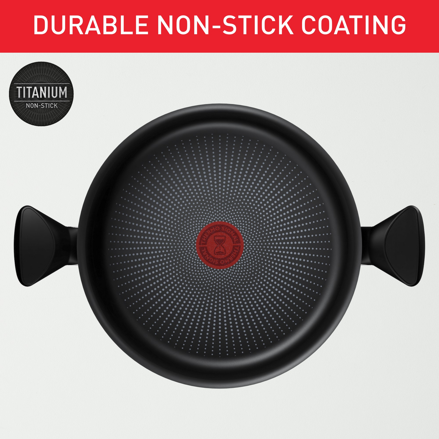 Tuotteiden erittäin kestävä ja tarttumaton Titanium Pro -pinnoite kestää kaksi kertaa pidempään verrattuna Tefalin vakiopinnoitteeseen. Laadukkaan tarttumattoman pinnoitteen ansiosta voit valmistaa terveellisempiä aterioita ilman rasvaa ja tuotteen puhdistus käy kätevämmin. Pinnoite on täysin turvallinen, sillä se ei sisällä lyijyä, kadmiumia tai PFOA-yhdisteitä.