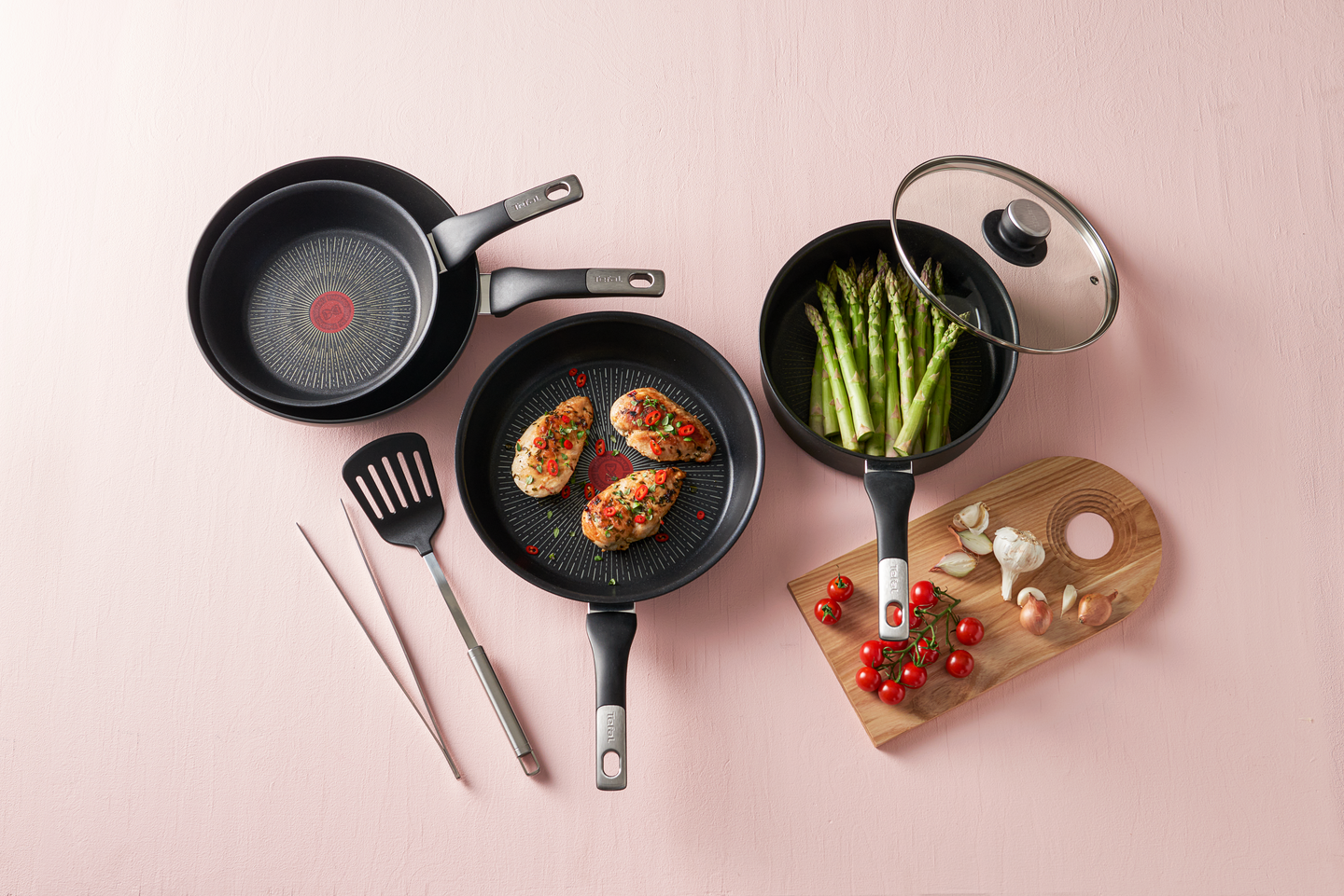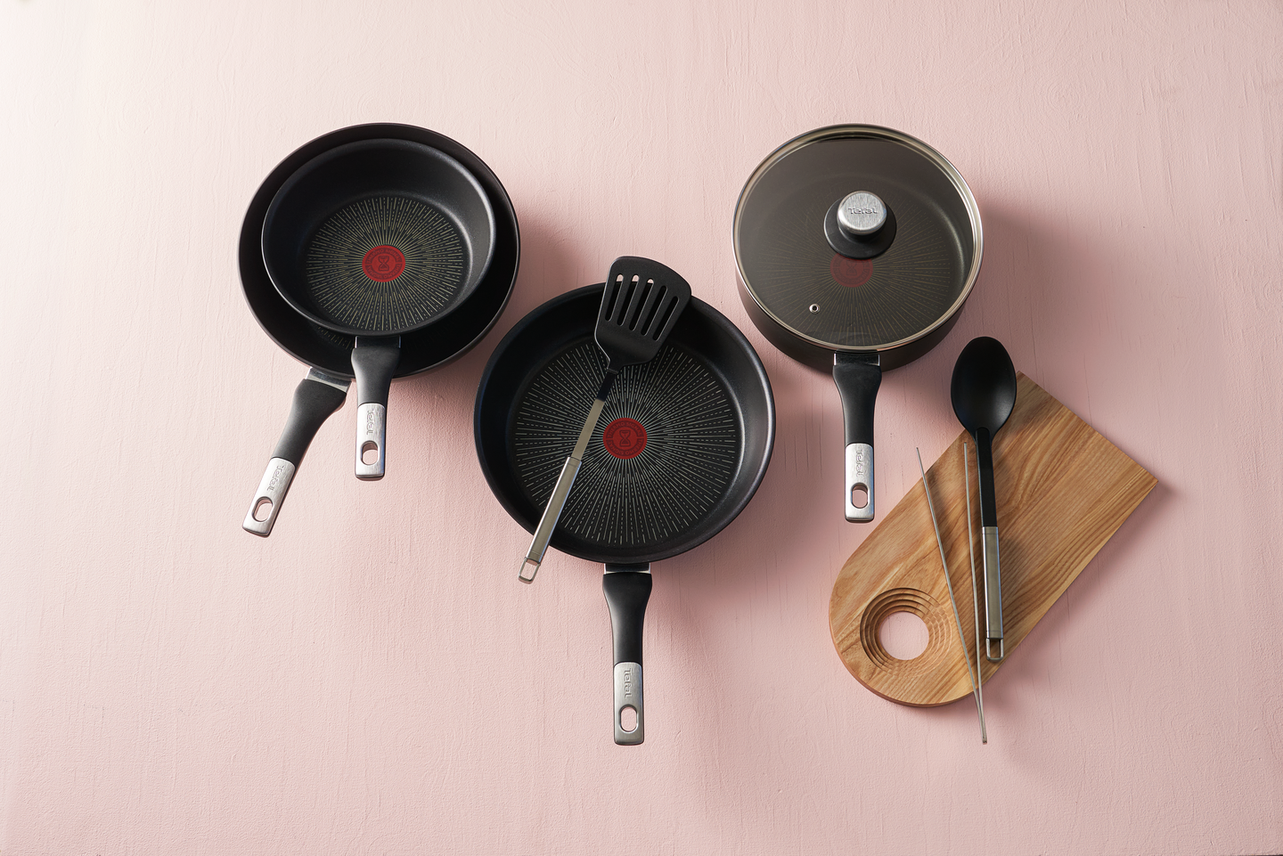Paistoastioiden uusi sukupolvi. Vuosien kehitystyön tuloksena syntynyt uusi titaaninen naarmuuntumaton ja tarttumaton pinnoite kestää kuusi kertaa pidempään kuin Tefalin standardipinnoitteet. Kestää jopa metalliset työvälineet. Uusi selkeä Thermo-Signal lämpötunnistin, joka muuttuu kokonaan punaiseksi, kun pannu on saavuttanut optimaalisen paistolämpötilan (noin +180°C). Paistokasari on korkealaitainen ja mahdollistaa suurten annosten valmistamisen, joten voit helposti laittaa ruokaa perheelle tai vieraille. Lisäksi ruoanlaitto sujuu siistimmin ja kätevämmin, kun ruokaa ei roisku liedelle. Paistokasarissa on lisäksi kaatoreuna, joka estää ruoan valumisen pannun reunaa pitkin liedelle. Kasarissa on uudistettu paksu Thermo-Fusion -induktiopohja, jonka laajempi induktioalue takaa nopean ja tasaisemman lämmönjakautumisen. Tukeva kahva, jossa yksityiskohta harjattua terästä viimeistelee designin. Soveltuu kaikille liesille. Uuninkestävyys +175°C . Lasikansi, jossa höyryaukko. Turvallinen käyttää, ei sisällä PFOA-yhdisteitä, lyijyä eikä kadmiumia. Valmistettu Ranskassa.