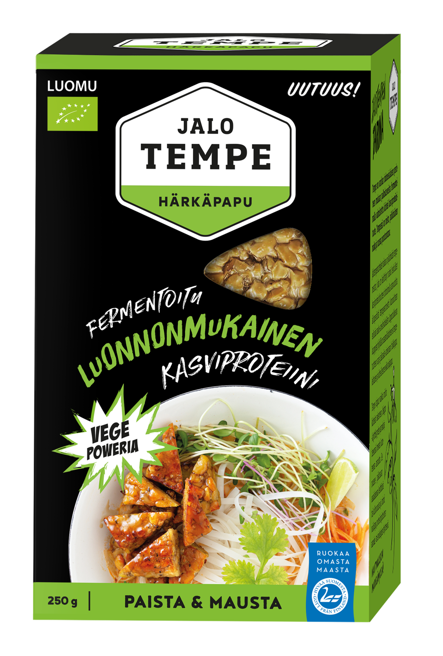 Tempe on vanhan indonesialaisen perinteen mukaan palkokasveista fermentoimalla valmistettu kiinteä kasviproteiinituote. Tempessä on mieto, pähkinäinen maku ja runsas purutuntuma. Jalotempetuotteiden takana on Jalofoodsin tempemestari, joka on kehittänyt nämä herkulliset kasviproteiinituotteet intohimolla satavuotista alkuperäistä tempeperinnettä kunnioittaen erilaisia raaka-aineita kokeillen. Lopputuloksena kauppojen hyllyillä on saatavilla kolmen eri tempetuotteen sarja pääraakaaineinaan härkäpapu, keltainen ja vihreä herne sekä soijapapu. Tempe taipuu vaikka mihin kiinteän rakenteen, helppokäyttöisyyden ja makuja itseensä imevän luonteensa ansiosta. Se nousee pääosaan aasialaisessa keittiössä tai kulhoruoissa ja toimii vaikkapa proteiinipitoisten aamiais- tai eväsleipien täytteenä.
