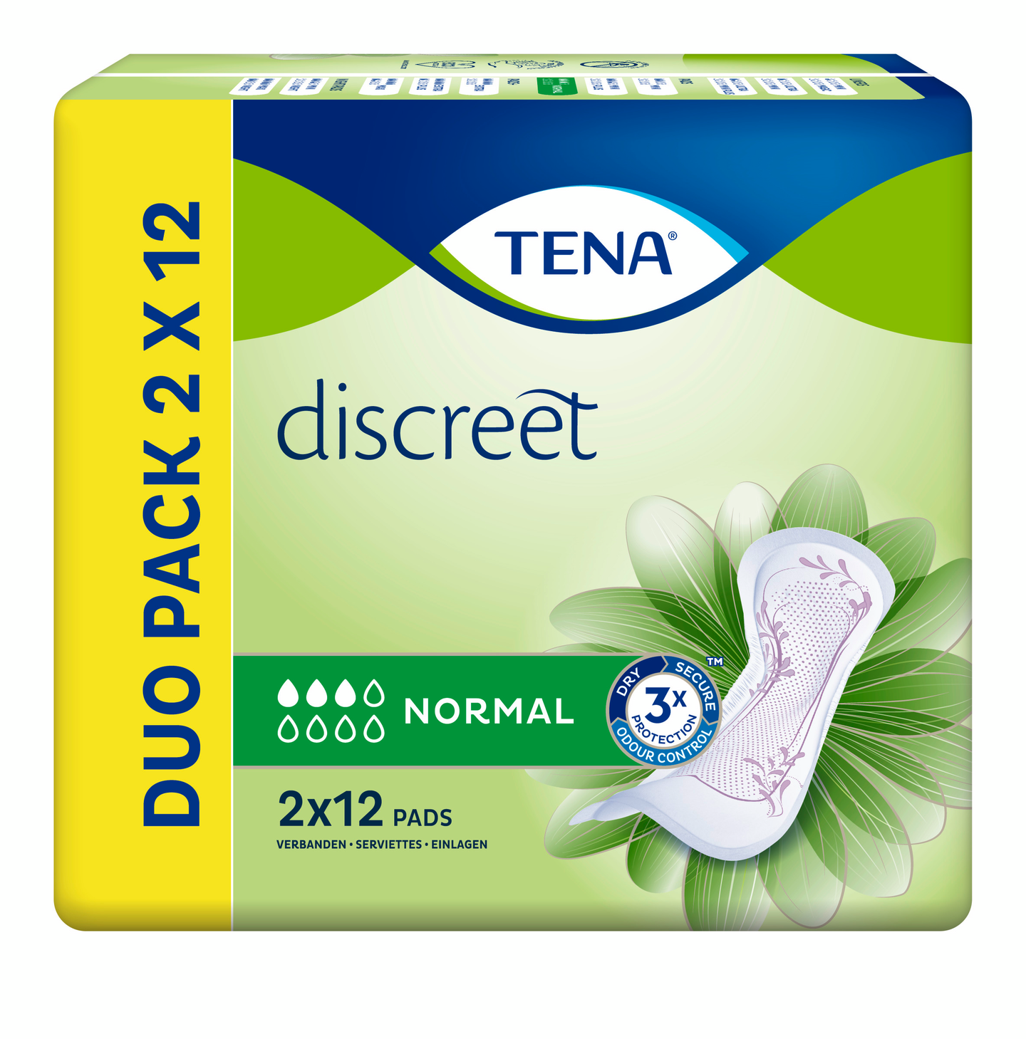 TENA Discreet Normal on huomaamaton ja varma suoja keskivaikeaan virtsankarkailuun. Tämä pehmeä ja äärimmäisen imukykyinen suoja on anatomisesti muotoiltu ja sopii päivittäiseen käyttöön naisille, joilla on herkkä virtsarakko. Kolmitehoinen suojaa takaa, että vuodot, hajut ja kosteus imeytyvät nopeasti. TENA Discreet Normal sopii mainiosti virtsankarkailuun: olo on aina varma ja suoja huomaamaton.