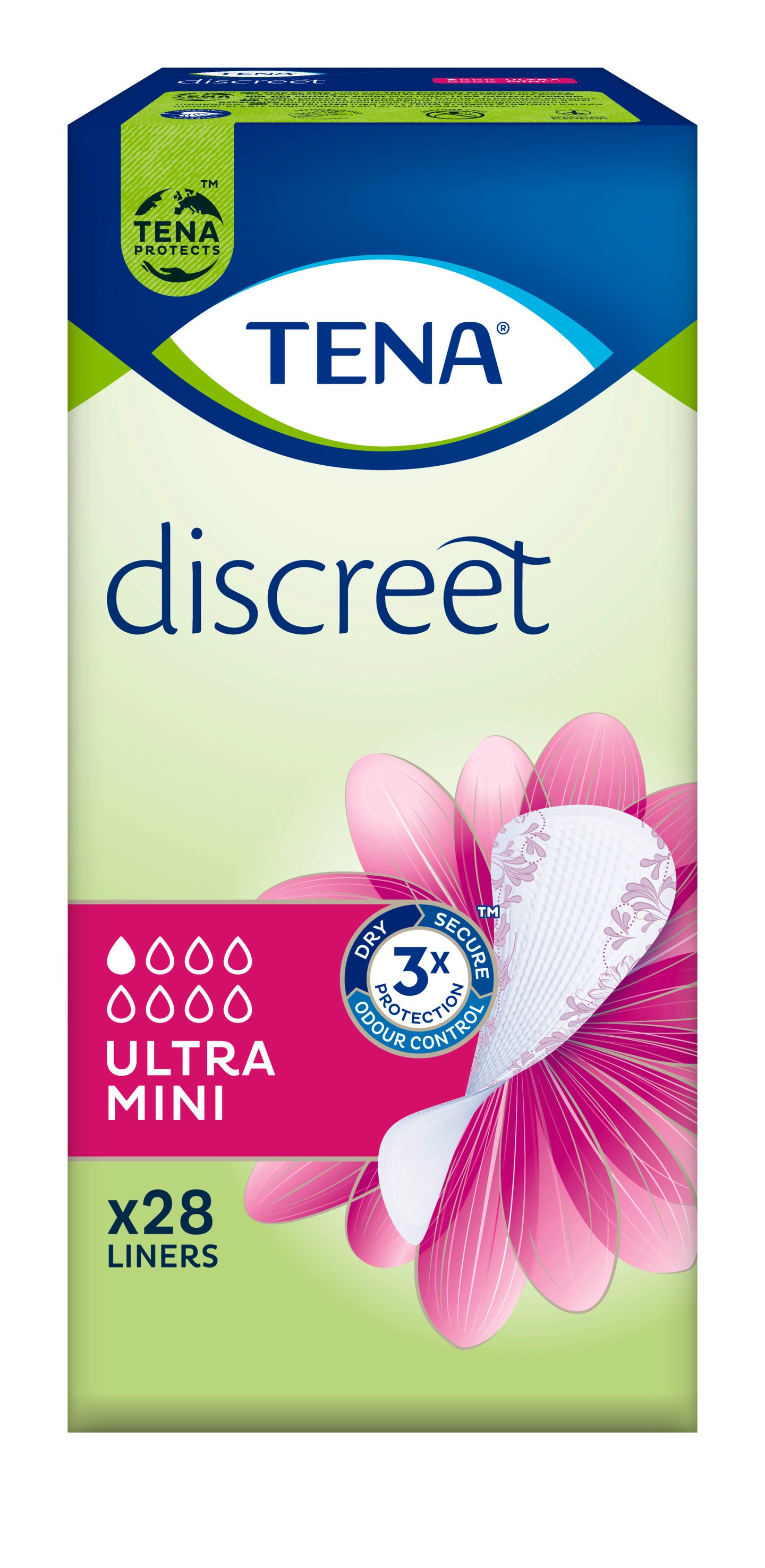 TENA Discreet Ultra Mini -pikkuhousunsuoja on ultraohut, mutta silti erittäin imukykyinen. Se on varma ja huomaamaton suoja vähäiseen virtsankarkailuun ja satunnaiseen tiputteluun. Suoja on samankokoinen kuin tavallinen pikkuhousunsuoja, mutta paljon imukykyisempi microPROTEXT™-teknologian ansiosta, joka lukitsee nesteen nopeasti suojan sisään. Ohut ja varma pikkuhousunsuoja imee nesteen ja hajut välittömästi pitäen olosi raikkaana koko päivän.