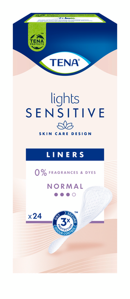 Snabbabsorberande skydd vid lättar urinläckage, utvecklade för känslig hy och med 0 % doft- eller färgämnen. Tillverkade för lättare urinläckage, men absorberar dock mycket effektivare än ett vanligt trosskydd. Detta skydd av medelstorlek är 19 cm långt och bara 3 mm tjockt - perfekt passform för din kropp, och för att hjälpa dig ta hand om ett lättare urinläckage på ett diskret sätt. Skyddet är andningsbart och dermatologiskt testat för att vara säkert och vänligt mot din intima hy. Med Triple Protection har du tredubbelt skydd, mot läckage, lukt och fukt. Kisset sugs snabbt bort från huden och lagras långt inne i skyddet. Känn dig fräsch, torr och ta hand om din hud med inkonkontinensskydden TENA Lights.