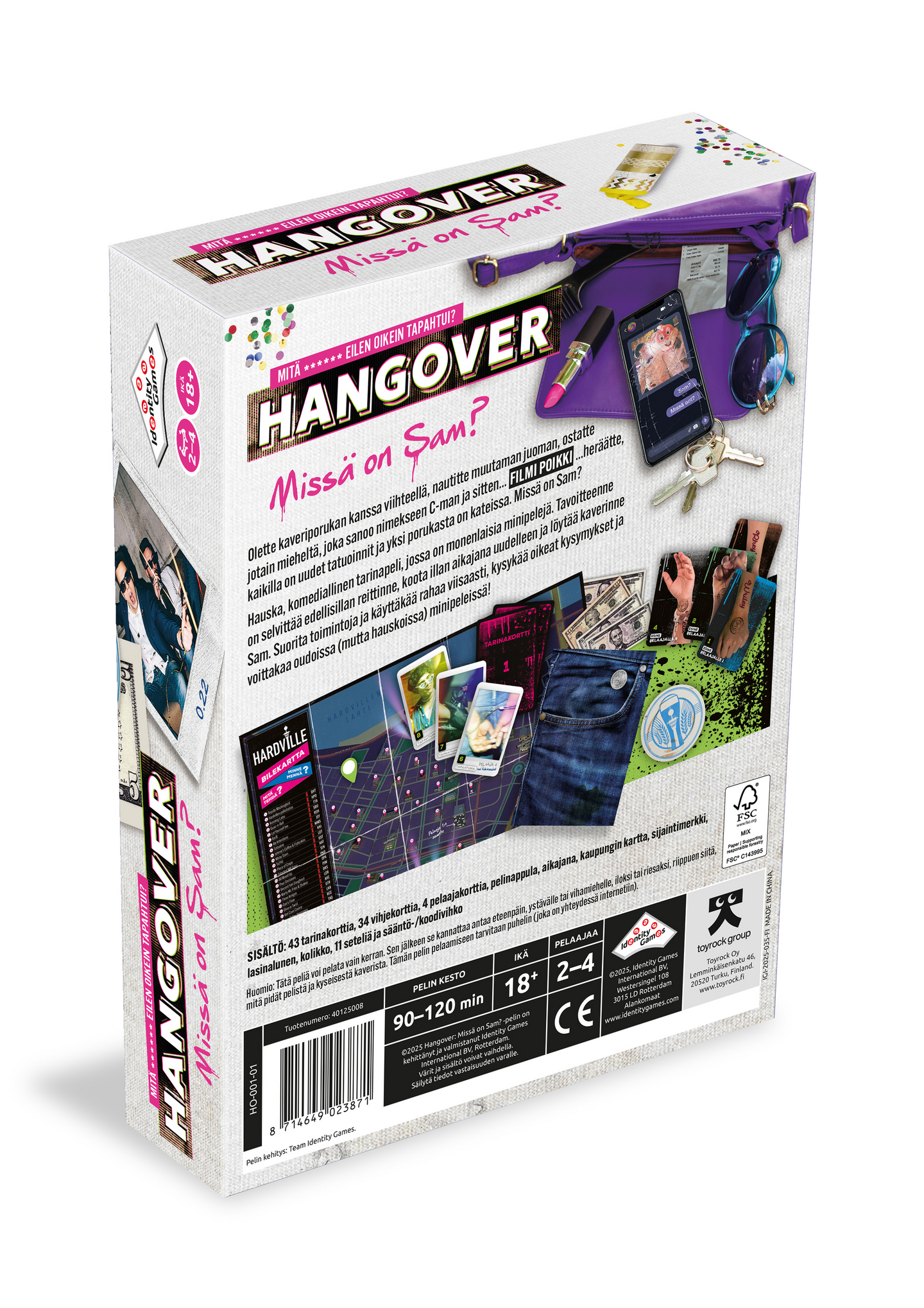 Tarinavetoinen partypeli aikuisille! Pelaajien muisti pätkii kostean illan jälkeen. Suorittakaa hauskoja tehtäviä ja selvittäkää, mitä kaikkea edellisiltana on tapahtunut ja missä ihmeessä Sam on. Pelin kesto 90 min. 1-4 pelaajalle. Kieli: suomi. 18+