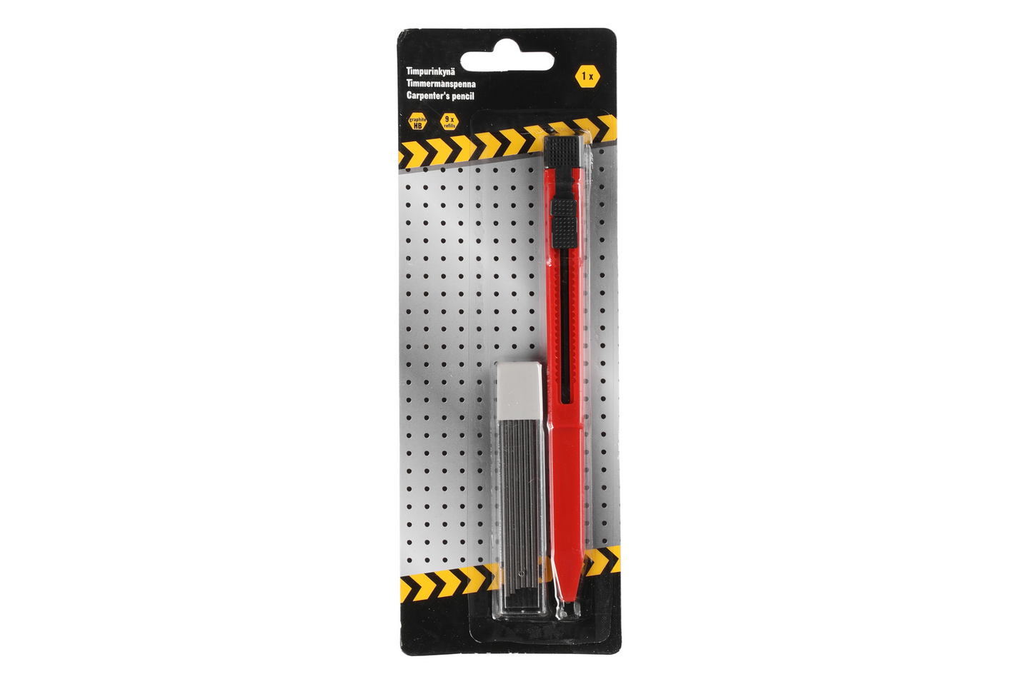 Kestävä ja hyvin tarttuva uudelleen täytettävä timpurinkynä muovikuorella. Mukana 9 lisälyijyä.
