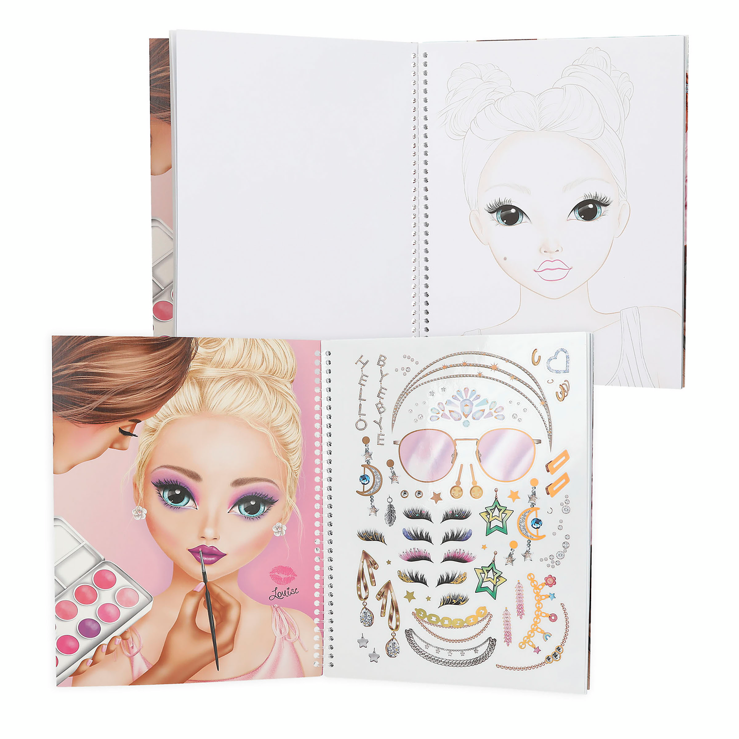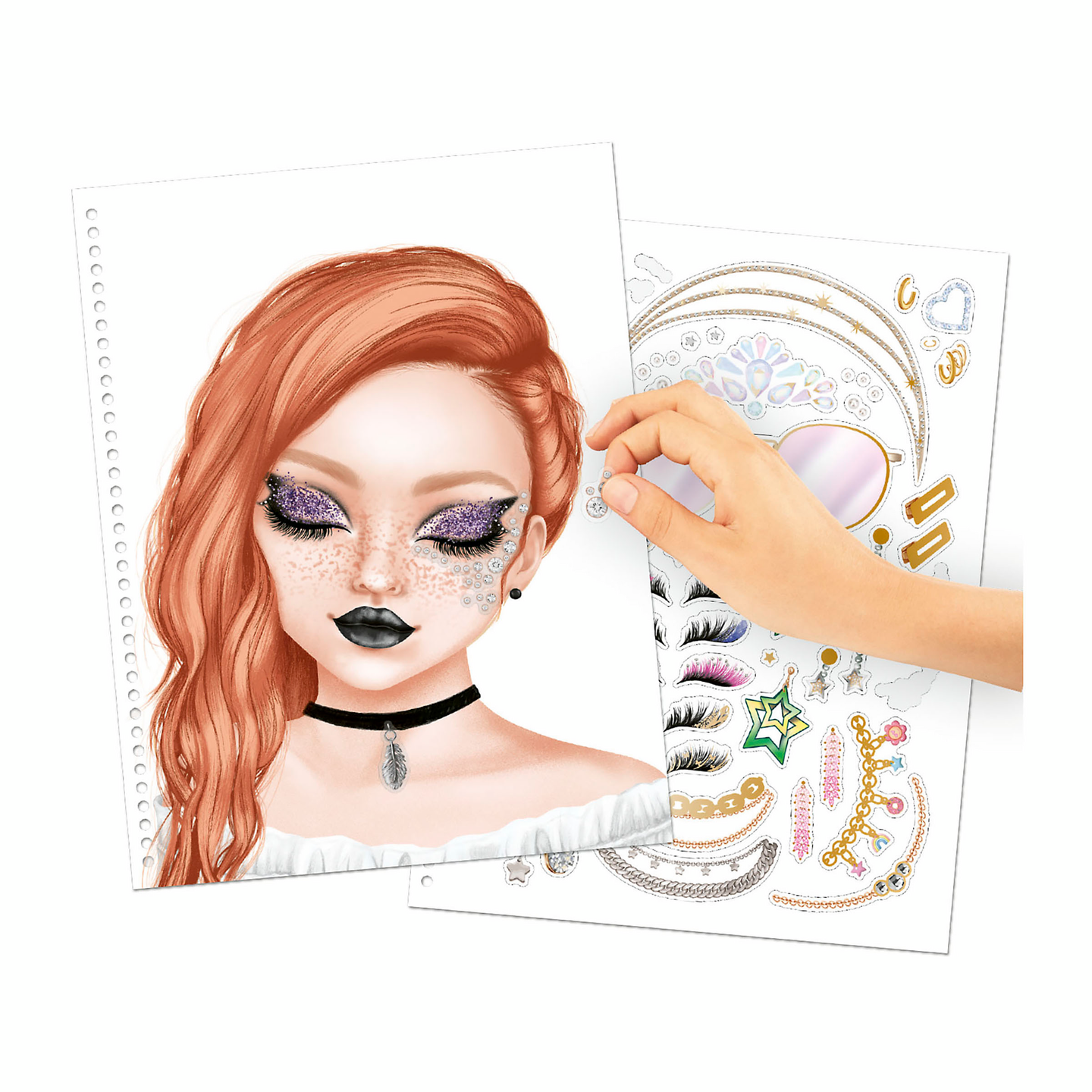 TOPModel Make-Up -suunnittelukirjassa on useita suunnittelusivuja, joihin voit suunnitella meikkejä ja asusteita eri tilaisuuksiin. Mukana on myös vinkkejä, joiden avulla teet töistäsi entistä hienompia, ja kauniita tarroja, joilla voit viimeistellä sivut!