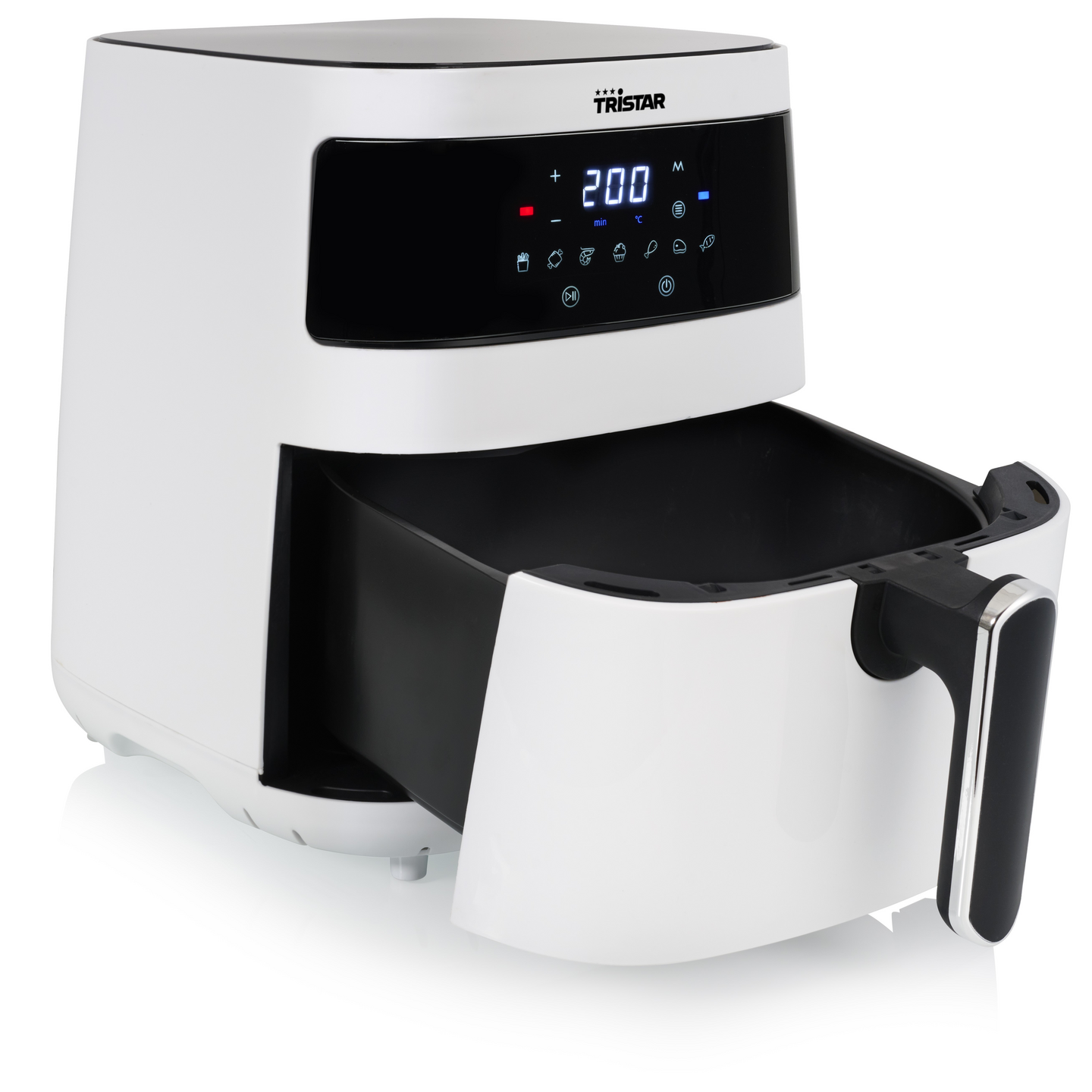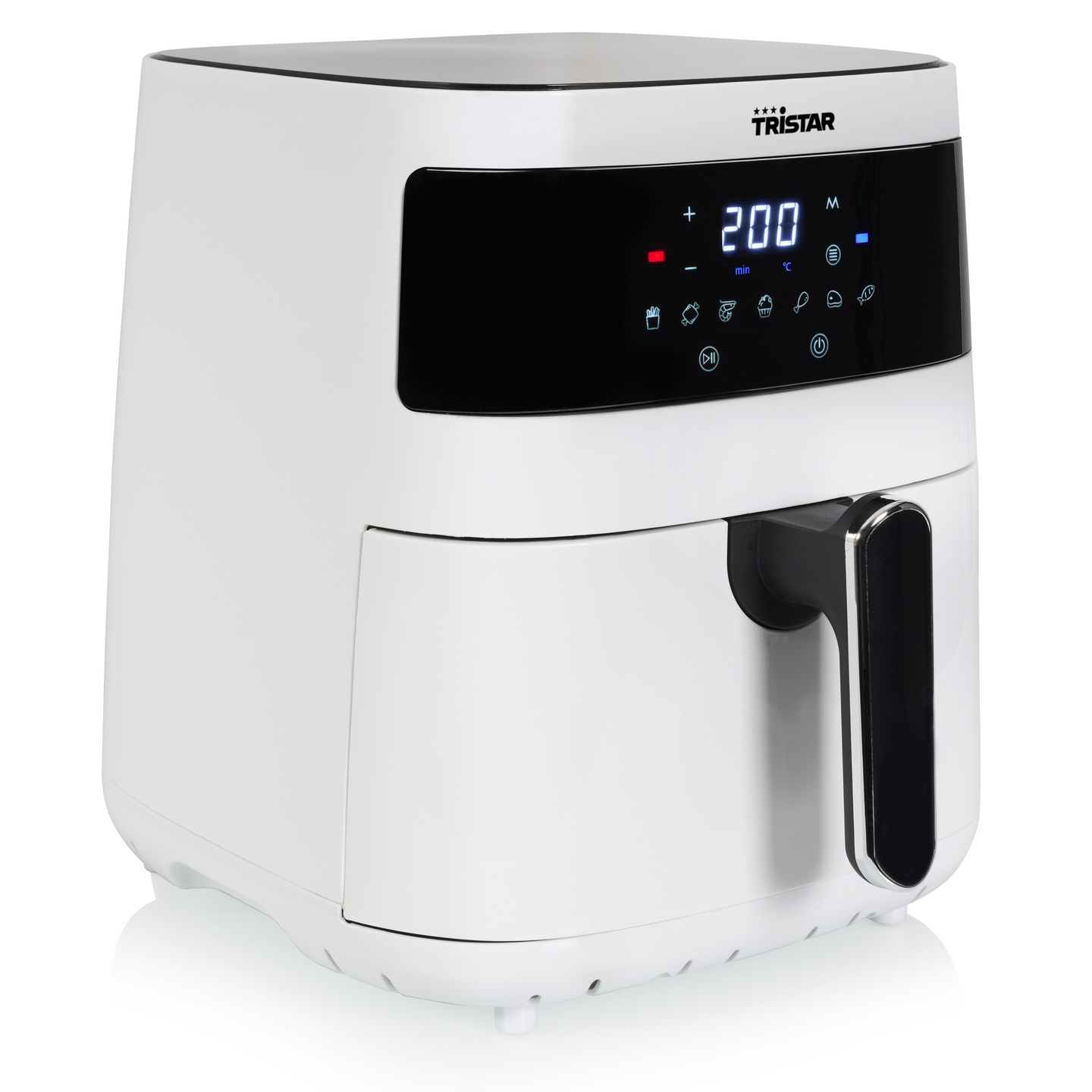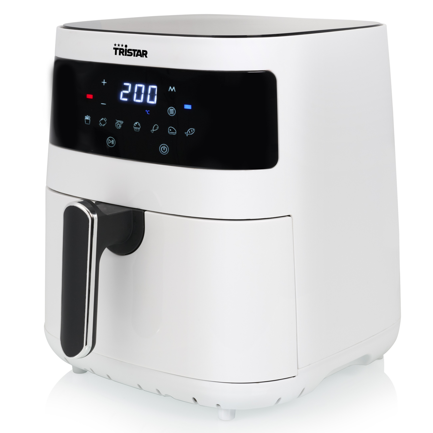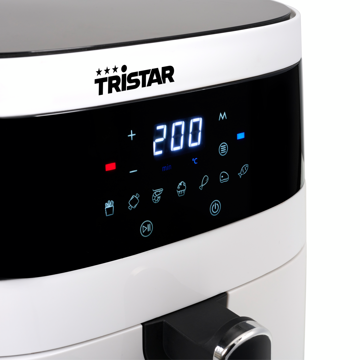 Tristar Airfryer on 5,5 litrainen kiertoilmakypsennin, jolla voit paistaa, leipoa ja grillata suosikkivälipalasi ja -ateriasi ilman rasvaa tai öljyä. Tristar Airfryer FR-9069PRNO suunniteltu intuitiivisella digitaalisella näytöllä ja helppokäyttöisillä säätimillä. Airfryerissa on seitsemän esiohjelmoitua paisto-ohjelmaa kaikille yleisimmille ja suosituimmille ruoka-aineille. Ohjelma antaa oikeat asetukset napin painalluksella, joten sinun ei tarvitse miettiä kypsennysaikaa ja lämpötilaa itse.