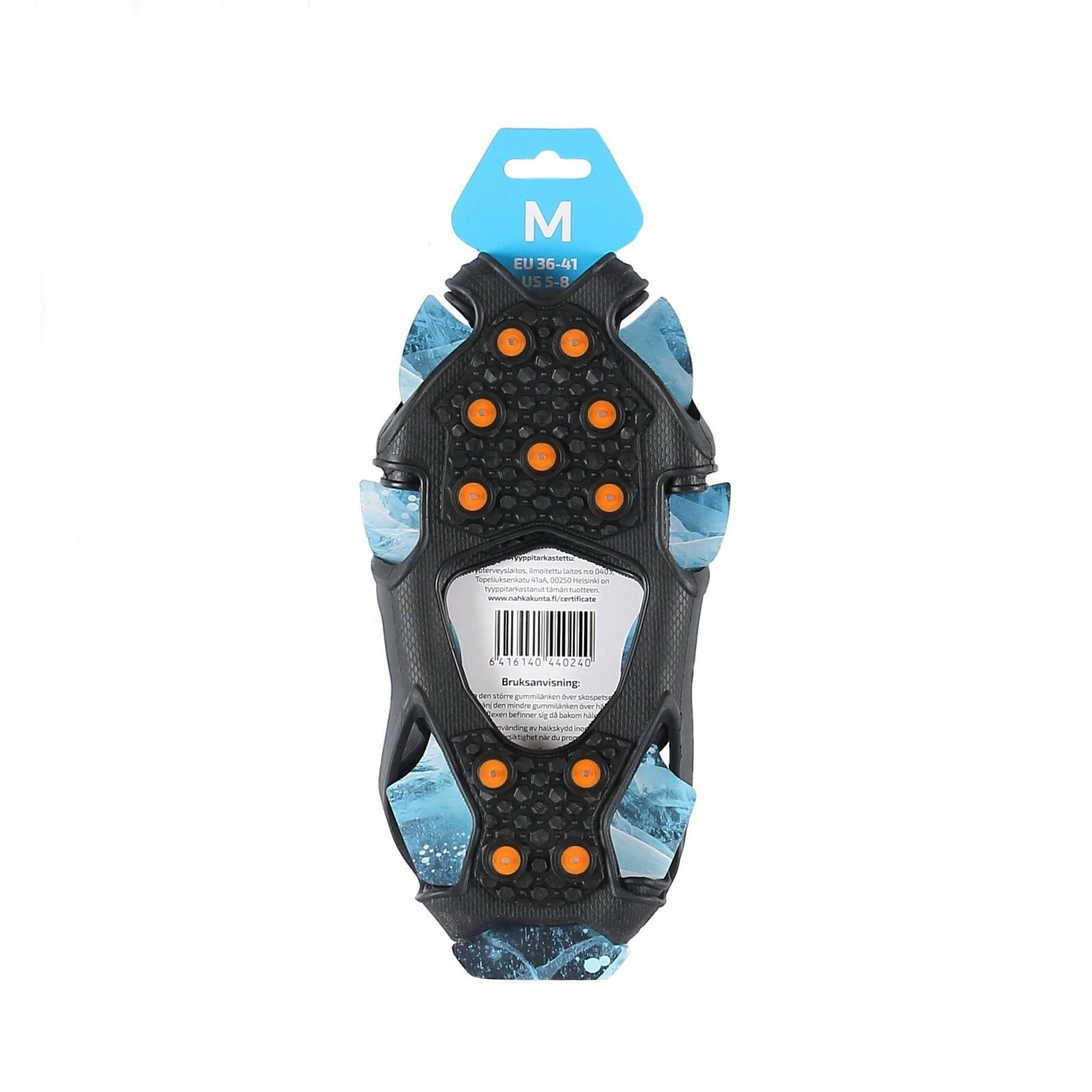 Joustava ja kulutusta kestävä TPE-materiaali säilyttää ominaisuudet -40°C asti. Kovametallinastat kestävät kulutusta ja antavat erittäin hyvän pidon jäällä ja lumessa.