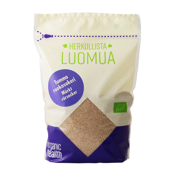 Tumma luomu ruokosokeri on valmistettu auringosta nauttineista sokeriruo’ista puristetusta sokerimehusta. Tumman ruokosokerin sokerikiteet ovat tavallista suurempia ja väriltään toffeenruskeita. Upea väri ja erityisen karamellimainen maku johtuu sen runsaasta melassin määrästä. Käytä leivontaan, juomien makeutukseen ja ruoanlaittoon!