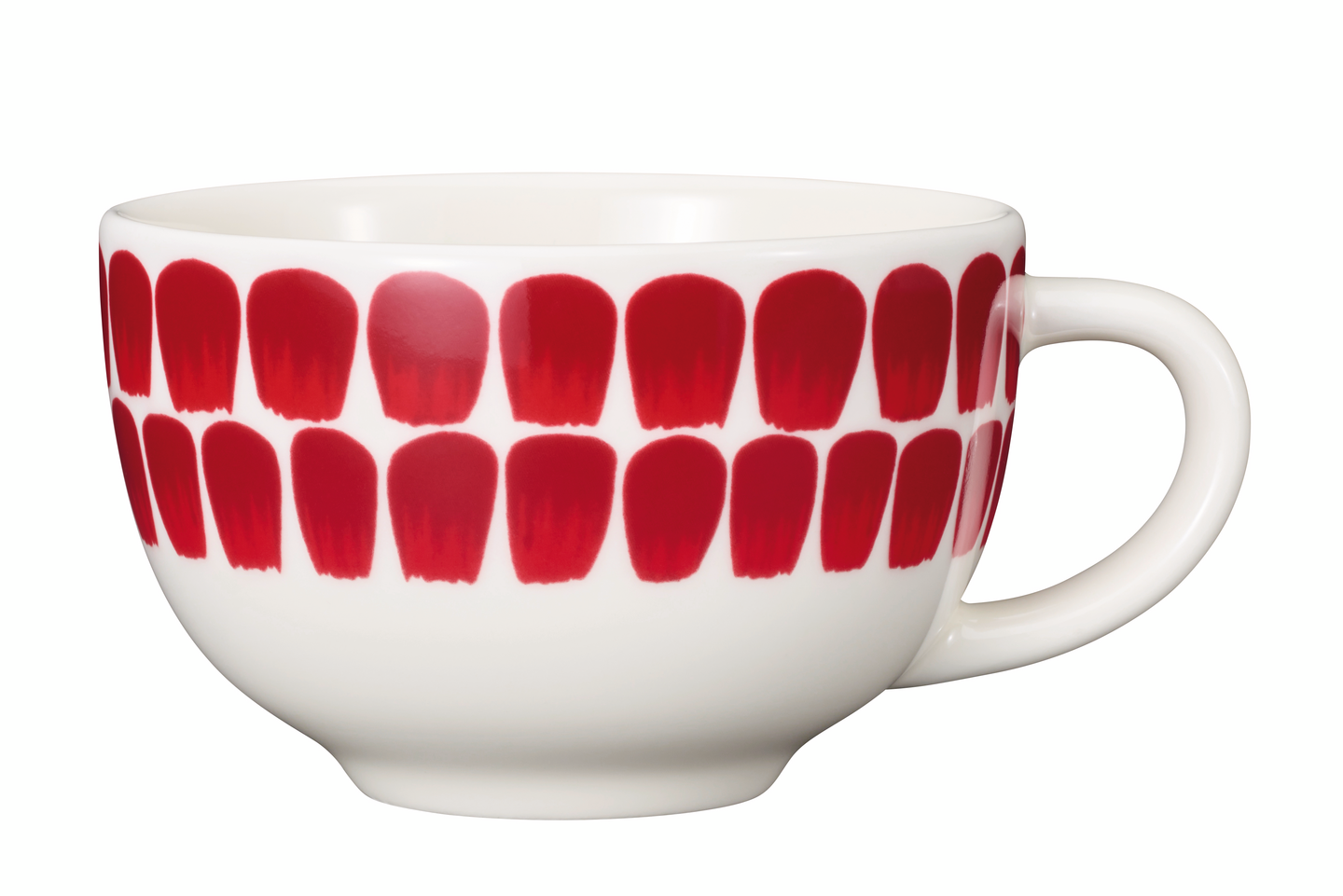 Pieni 0,26l Tuokio-kuppi on juhlava astia kuumille juomille. Se on suunniteltu yhteen pienen 17 cm Tuokio-vadin kanssa. Ajaton koristelu on hengeltään suomalainen, ja muoto sopii nykypäivän monimuotoisiin kattauksiin. Punainen kuvio on saanut inspiraationsa Arabian yli 140-vuotisesta koristeperinteestä.