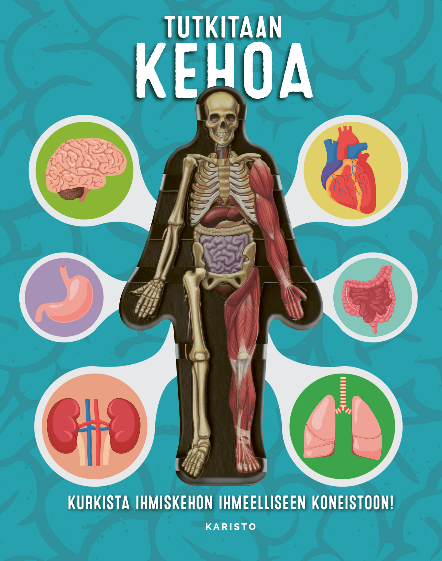 Kiinnostavaa tietoa ihmiskehon rakenteesta ja toiminnoista: luustosta, lihaksista, nivelistä, ruoansulatuksesta, verenkierrosta, erityksestä, hengityselimistä sekä hermostosta. Lukiessasi pääset myös kurkistamaan kehon sisälle, sillä kirjan kuvat avaavat kehon kerroksittain aukeama aukeamalta.
