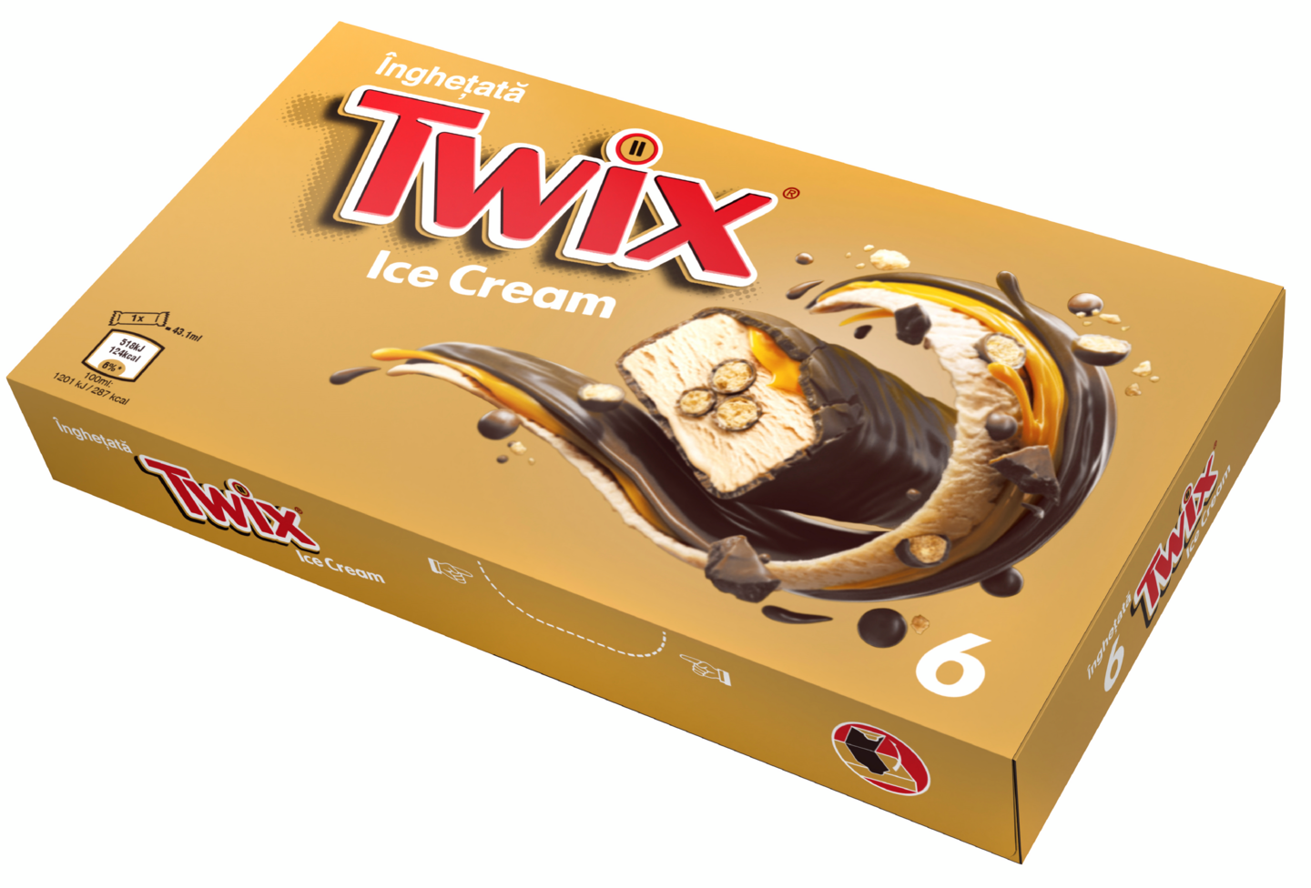 TWIX®-kermajäätelöpatukassa kaakao, karamelli, keksi ja kermajäätelö kohtaavat toisensa herkullisella tavalla. TWIX®-kermajäätelöpatukka 6*34,2g
