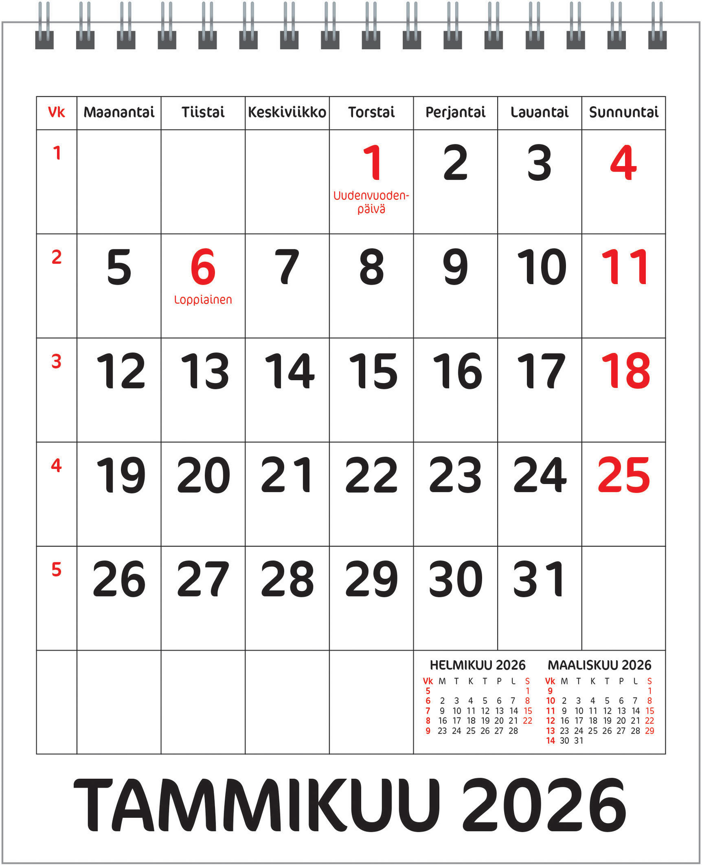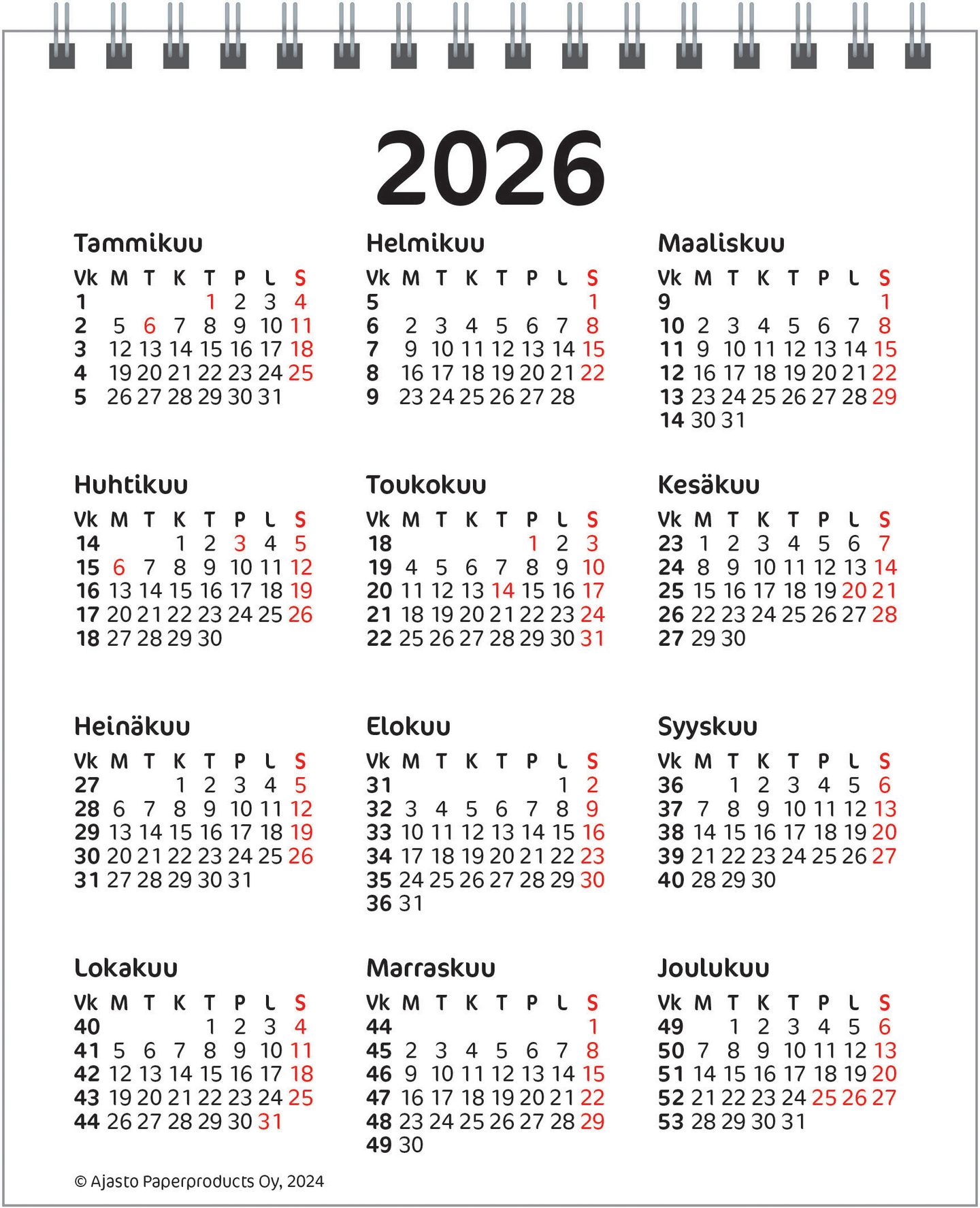 Kätevä työväline toimistopöydälle. Koko 145 x 175 mm; etupuolella kuukausi ja takana vuosi; Avainlippu-tuote; FSC®-sertifioitu tuote; 100 % hiilineutraali tuote.