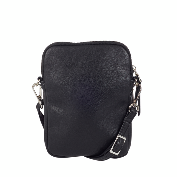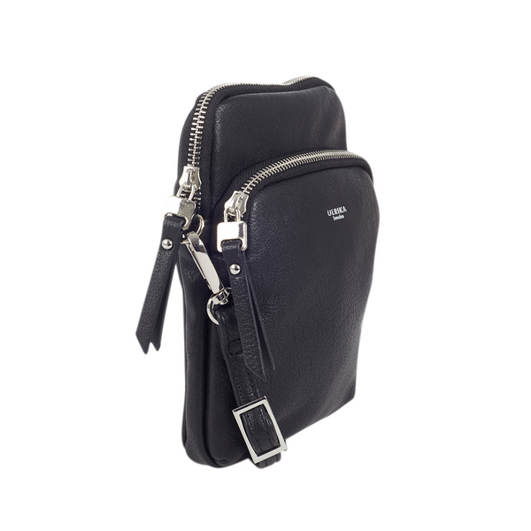 Näppärä pieni laukku vetoketjullisilla taskuilla. Pitkä olkahihna.