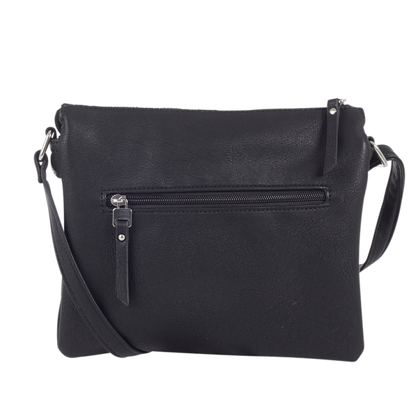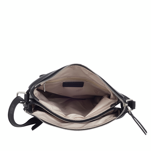 Käytännöllineen ja monipuolinen olkalaukku. Laukku suljetaan vetoketjulla ja sen sisällä on kolme erillistä osastoa joista keskellä oleva on kahta muuta kapeampi. Sisällä on myös pari avotaskua joiden lisäksi vielä vetoketjullinen taskukin. Lisäksi niin takaa kuin edstä löytyy vetoketjullinen tasku. Portaattomasti säädettävä pitkä olkahihna. 24x20x6cm