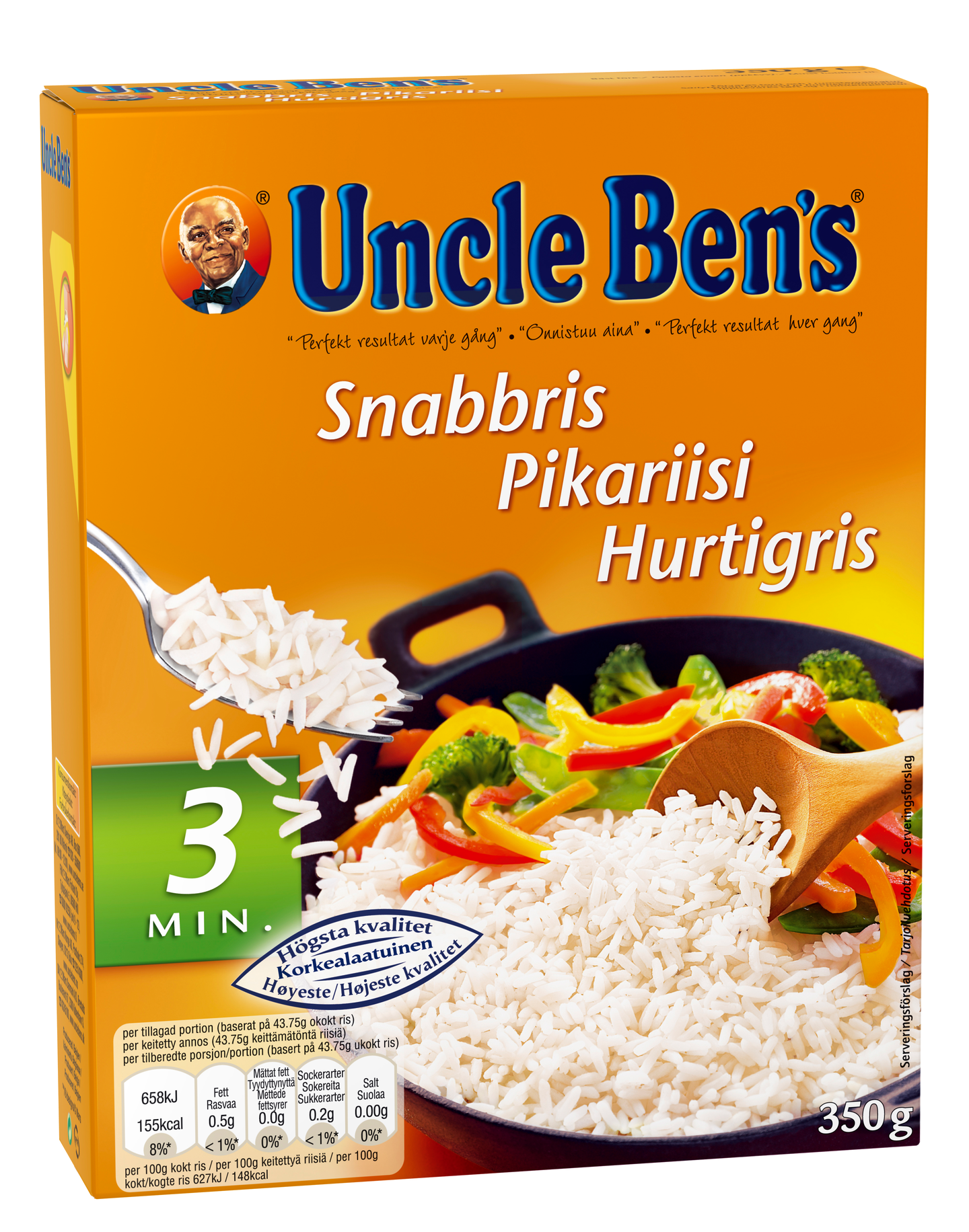 Uncle Ben's® Pikariisi on tunnettua Uncle Ben's® -laatua, mutta se kypsyy vain 3 minuutissa. Riisi on valmista käden käänteessä! Maku on neutraali ja riisi on ilmavaa, joten se soveltuu täydellisesti kaikkiin ruokalajeihin.
