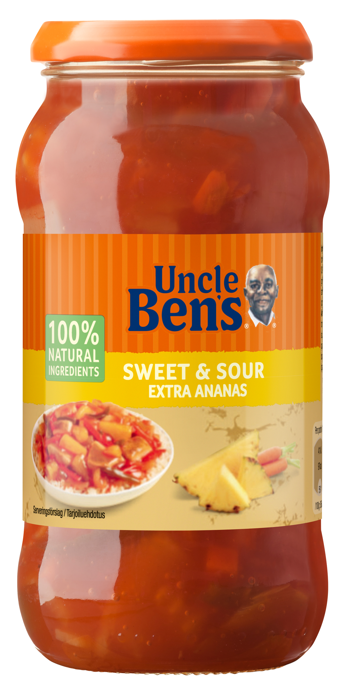 Suosittu Uncle Ben's® Sweet&Sour -kastike sisältää runsaasti ananasta ja punaista paprikaa, jotta kiinalaiset ruokalajit maistuvat paremmilta. Se sisältää vain korkealaatuisia aineosia. Ilman keinotekoisia maku-, väri- ja säilöntäaineita. Saat aina täydellisiä tuloksia, kun tarjoilet sen kera Uncle Ben’s® Pitkäjyväistä riisiä keittopussissa keitettynä tai Täysjyväriisiä.