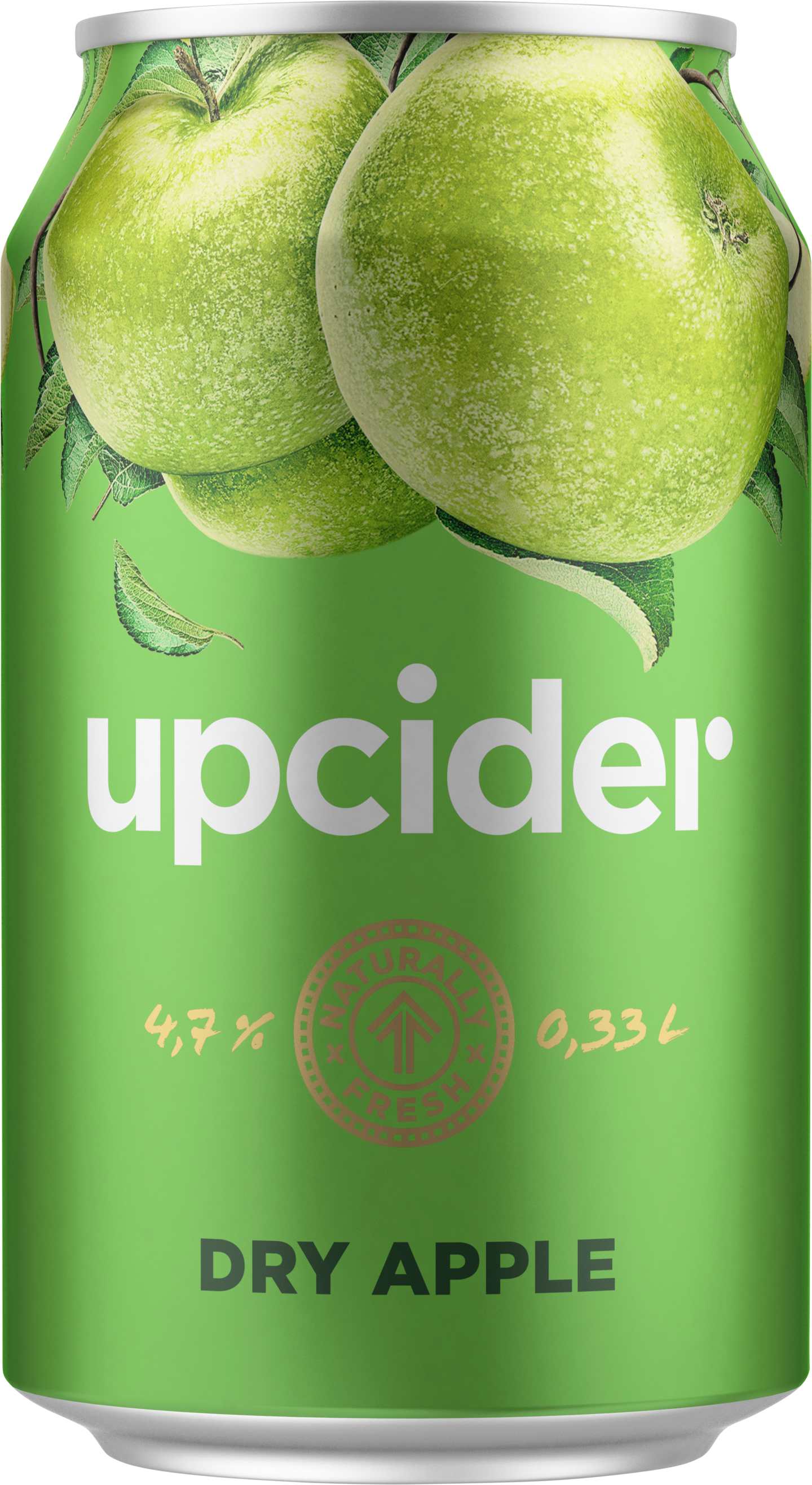 Upcider-siidereissä on mukavasti nostetta ja Upcider onkin markkinoiden fiilistä nostattavin siideri. Kaikissa Upcider-siidereissä on käytetty ainoastaan luontaisia aromeja. Merkkinä makujen luontaisuudesta pakkauksissa on Natural-leima. Upcider Kuiva Omena on omenaviinipohjaan valmistettu kuiva omenasiideri,joka on maltillisesti makeutettu sokerilla, energiasisältö 35 kcal /100ml.