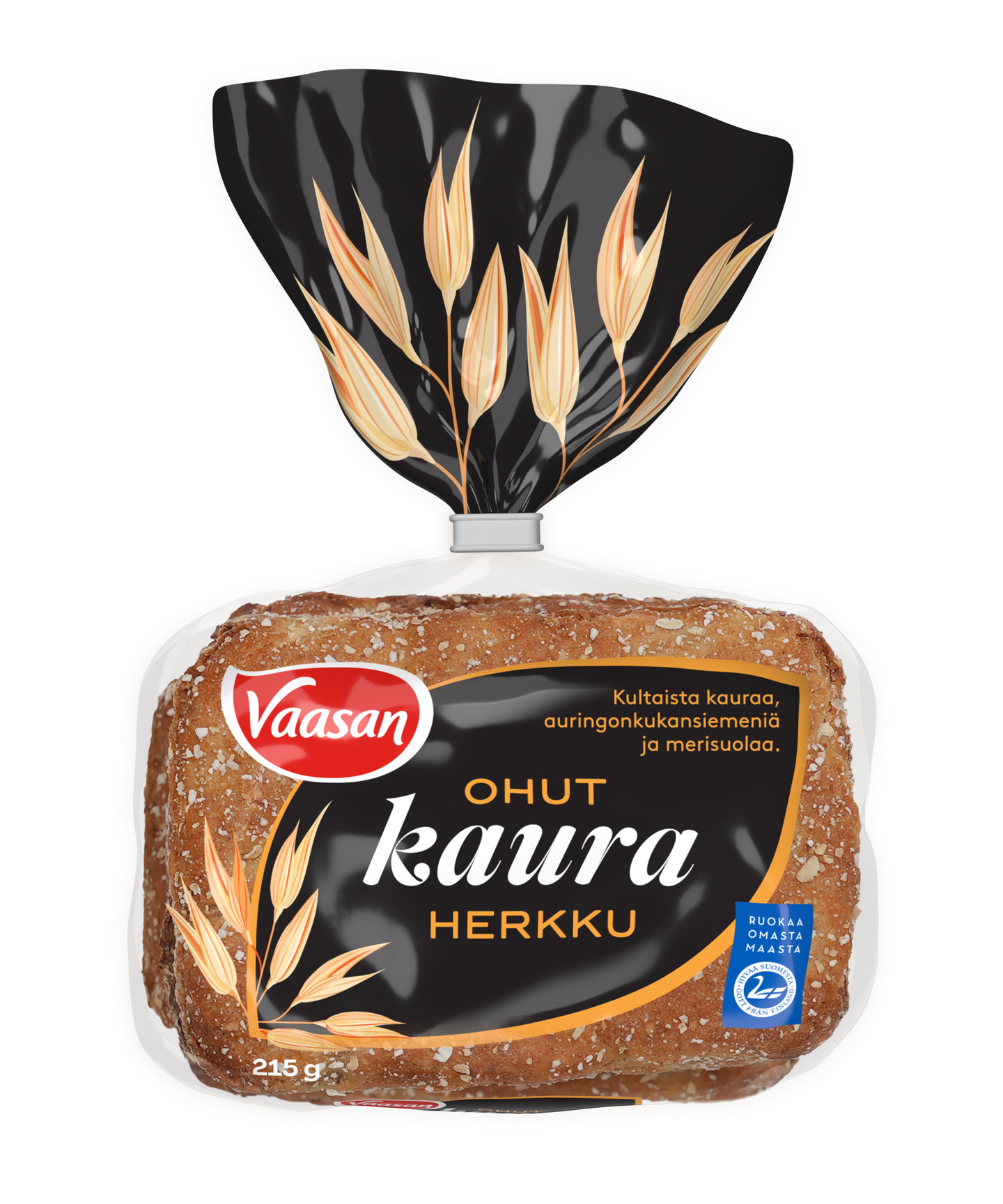 Ihanan ohut leipä, jossa kultaista kauraa, auringonkukansiemeniä ja merisuolaa. Leivottu Suomessa kotimaisesta viljasta.