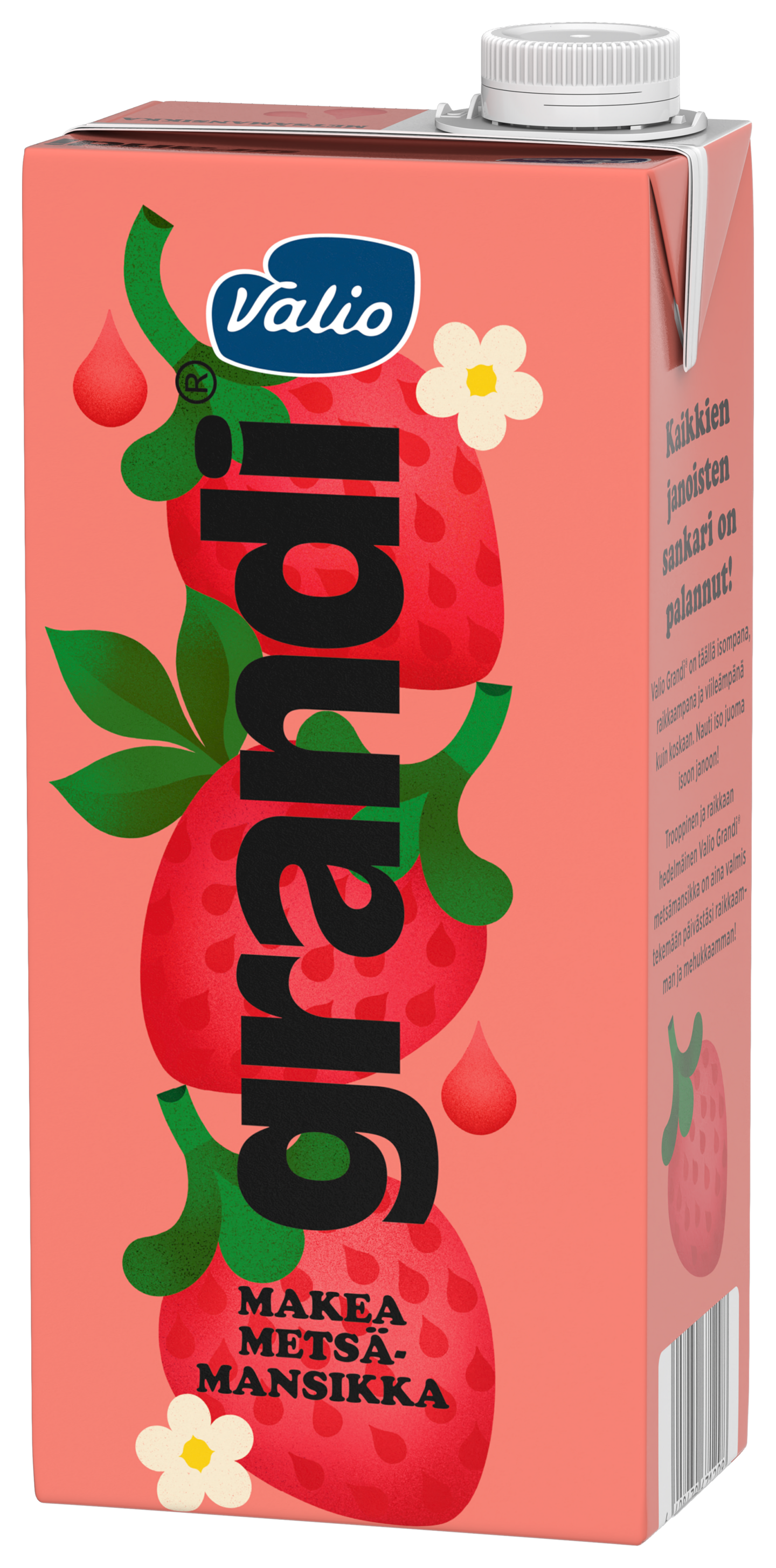 Iso juoma isoon janoon! Nauti uusista raikkaista Valio Grandi® mehujuomista yksin tai porukalla, litran pakkauksesta riittää jaettavaksikin. Grandi makea metsämansikka on maultaan mehukkaan marjaisa ja ihanan herkullinen mehujuoma. Juuri sopivan makea ja virkistävän makuinen. Sisältää sokeria.