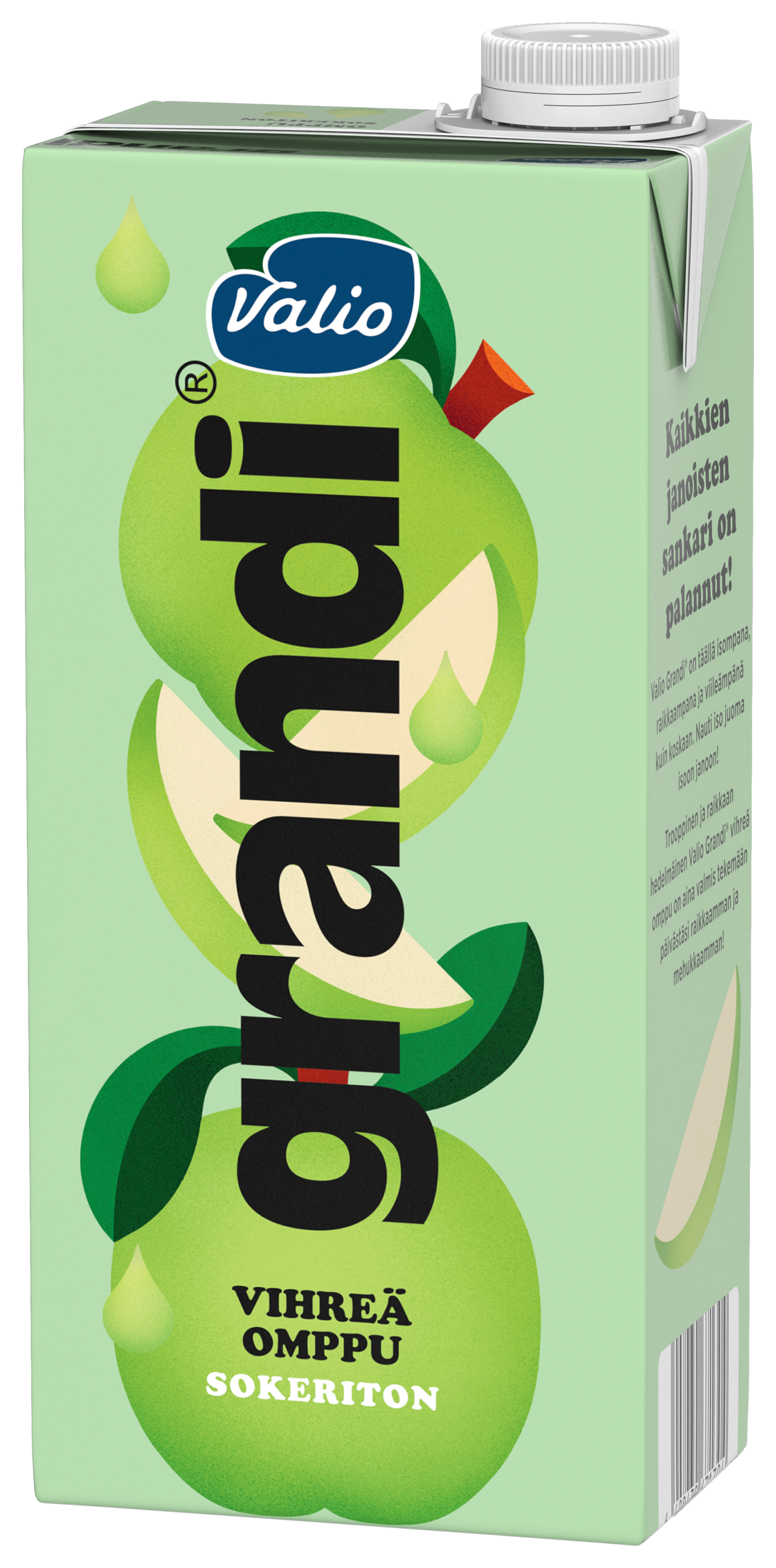 Iso juoma isoon janoon! Nauti uusista raikkaista Valio Grandi® mehujuomista yksin tai porukalla, litran pakkauksesta riittää jaettavaksikin. Grandi vihreä omppu on maultaan kirpeän omenainen, ihanan raikas ja hedelmäinen mehujuoma. Ja kaiken lisäksi sokeriton.