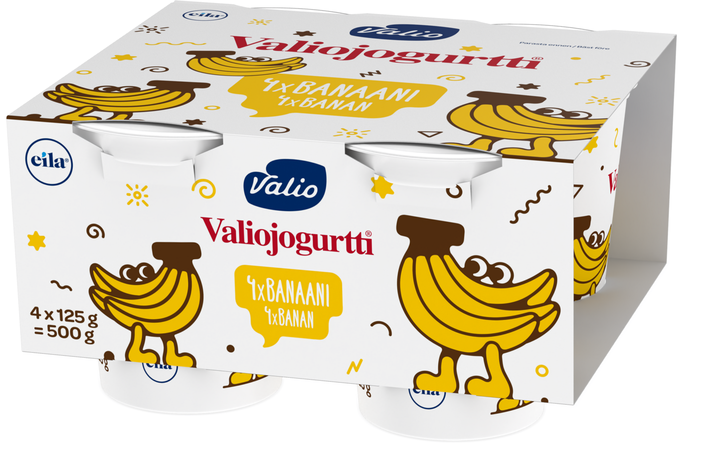 Valiojogurtti® 4x125 g banaani on herkullinen, hauska, helppo ja hedelmäinen välipala koululaisille ja perheen pienimmille! Monipakkauksissa myytävät jogurttimaut on kehitetty erityisesti lapsiperheitä ajatellen. Tuotteet ovat laktoosittomia.