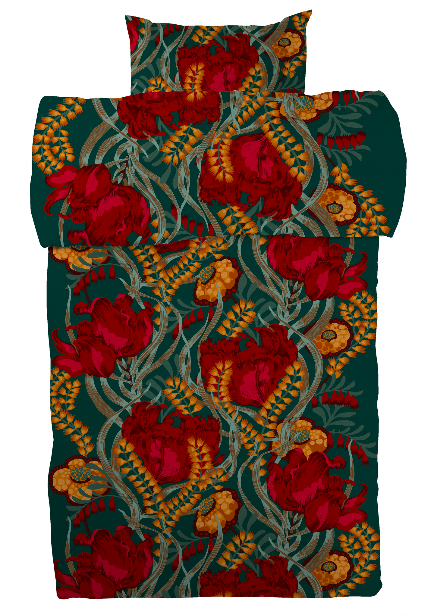 Anais-kuosi on eräänlainen tulppaanifantasia. Saara Kurkelan suunnittelma kuosi viittaa raskalaiskirjailijaan Anais Niniin. Satiinipussilakanan koko on 150x210 cm ja settiin kuuluvan tyynyliinan koko 50x60 cm. Pussilakanassa on nappisuljenta. Öko-Tex, Design from Finland.
