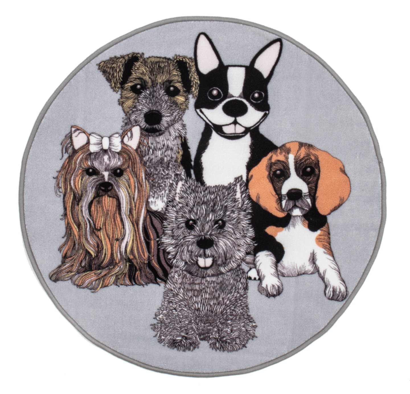 Vallilan valloittavassa Doggies-kuosissa sisustajaa kohti katsovat terhakat ja lempeät koirakaverit. Matto on koneellisesti valmistettu ja sen pinta on 100 % polyamidisilmukkanukkaa. Printtimatto on tekokuidun ansiosta erittäin kulutusta kestävä. Matossa on lankakanttaus. Digitaaliprinttauksen ansiosta penimmätkin yksityiskohdat tulevat upeasti esiin. Vesipestävä matto pysyy hyvin paikoillaan liukuestepohjansa ansiosta. Hoito-ohjeena laakavesipesu käsin tai pesulassa.