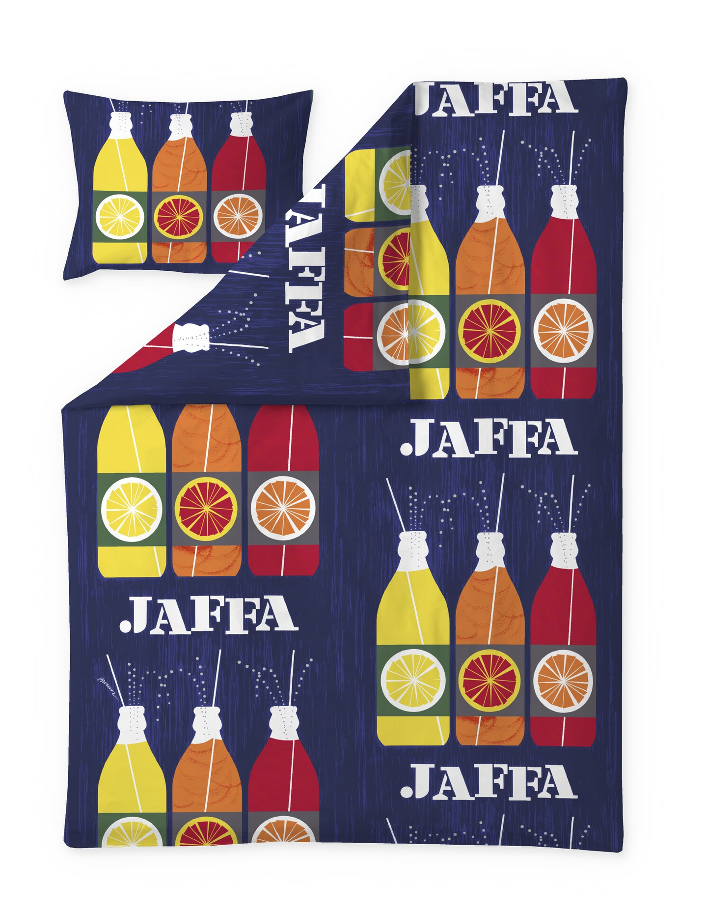 Erik Bruunin suunnittelema Jaffa-julistekuosi, tuo 1950-luvun suosikki, tekee taas näyttävän paluun Vallilan mallistoon. Jaffa on pirskahteleva, raikas, selkeä ja energisen iloinen kuosi. Jaffa-pullot, nuo houkuttelevat janonsammuttajat, tuovat piristystä sisustukseen ja jokaiseen päivään. Sihahtavasta appelsiinijuomasta voi nyt nauttia lukuisten sisustustuotteiden muodossa!