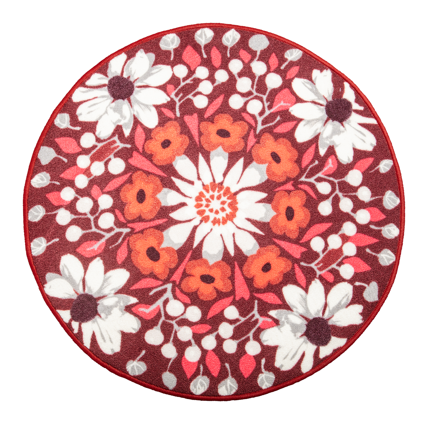 Vallilan Mandala-kuosissa on elämän voimaa ja kiertokulkua symboloiva pyöreä kuvio. Kuosi on kuin kukista rakennettu pieni maailmankaikkeus, jonka keskellä on elämänkukka. Matto on koneellisesti valmistettu ja sen pinta on 100 % polyamidisilmukkanukkaa. Printtimatto on tekokuidun ansiosta erittäin kulutusta kestävä. Matossa on lankakanttaus. Digitaaliprinttauksen ansiosta penimmätkin yksityiskohdat tulevat upeasti esiin. Vesipestävä matto pysyy hyvin paikoillaan liukuestepohjansa ansiosta. Hoito-ohjeena laakavesipesu käsin tai pesulassa.