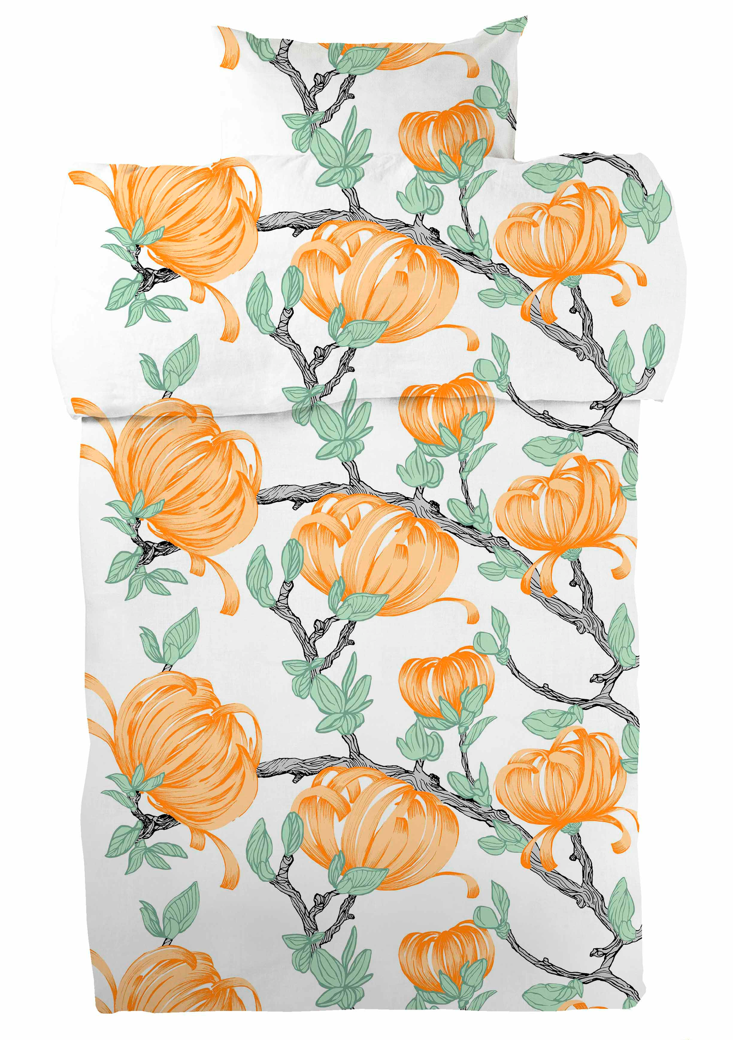 Vallilan 150x210cm kokoinen pussilakanasetti, johon kuuluu 50x60cm tyynyliina. Sydänkäpy-kuosin on suunnitellut Vallilan suunnittelija Saara Kurkela jo keväällä 2012, jolloin sitä on ensimmäisen kerran saanut ihastella mallistossa. Tämän ihastuttavan kukkakuosin tunnelma vaihtelee hienosti värityksen mukaan.