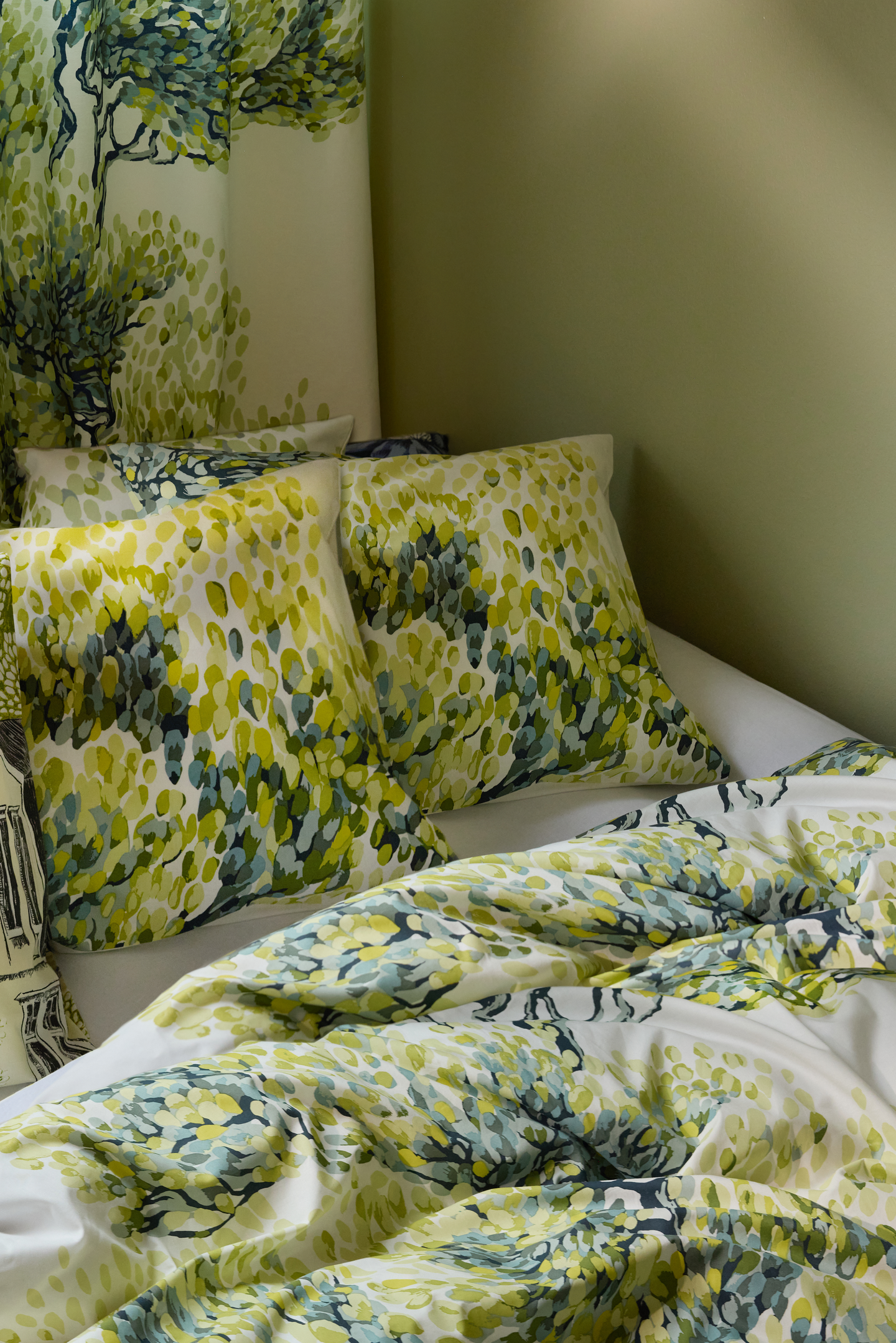 Riina Kuikan suunnitteleman Väre - kuosin pinnalla kiemurtelevat Lapin vaivaiskoivut. Puiden lehdissä vihreäneri sävyt tuovat luonnollisen tunnelman. Vallilan koristetyynynpäällinen on valmistettu 69% puuvillasta ja 31% kierrätetystä polyesterista. Käyttämällä 50x50cm kokoista sisätyynyä koristetyynystä tulee erityisen muhkea.