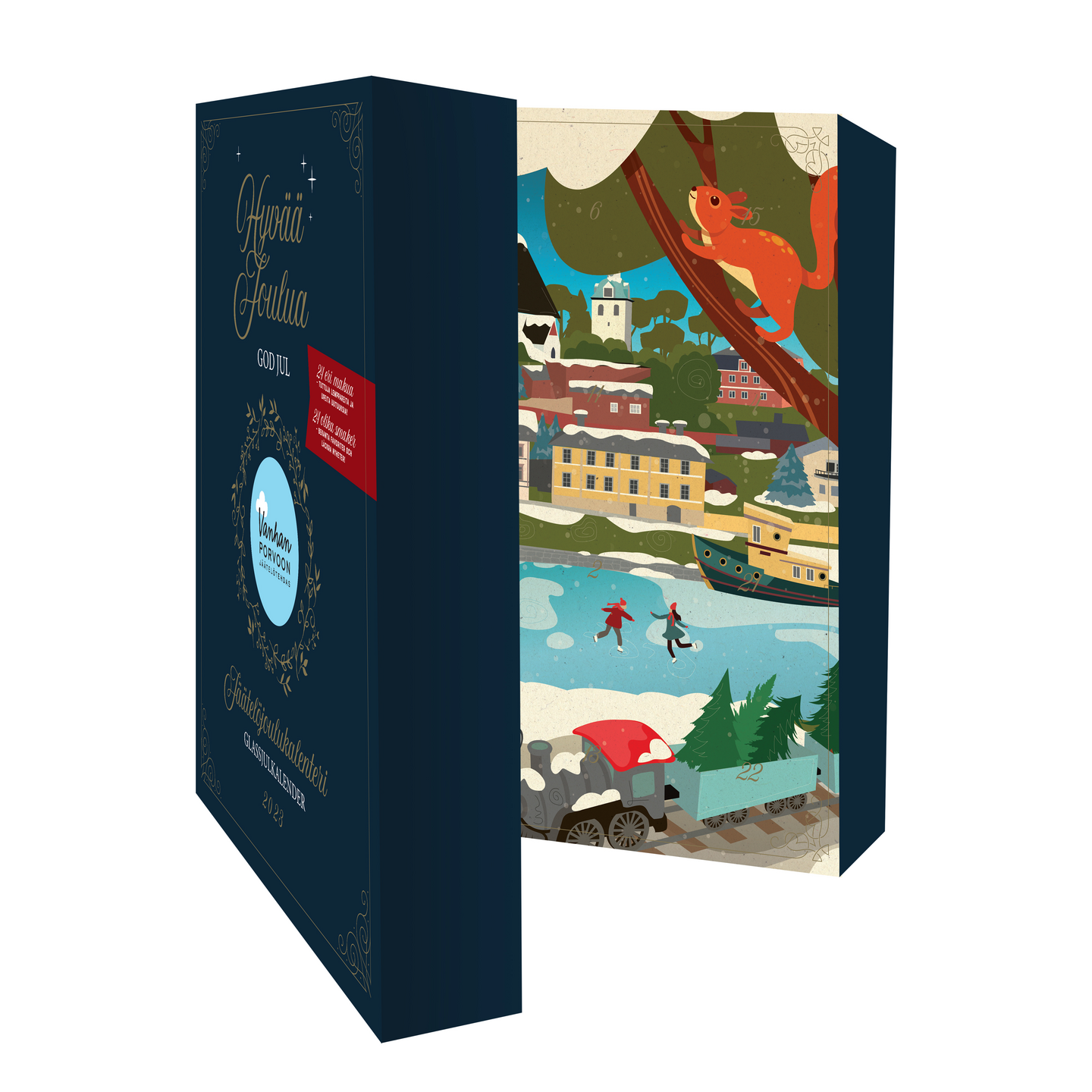 Suomen legendaarisin jäätelöjoulukalenteri on aiempaakin yllättävämpi ja runsaampi. Maistuva kalenterimme tarjoaa 24 aidosti erilaista makuelämystä. Jokaisessa luukussa on lusikoitavana 60 ml pikarillinen verratonta artesaanijäätelöä. Mitkähän maut vievät sinut tänä vuonna kohti joulunviettoa? Avaa luukku ja anna Vanhan Porvoon Jäätelötehtaan jäätelökalenterin yllättää! Vanhan Porvoon Jäätelötehtaalla jäätelö syntyy paikallisia raaka-aineita kunnioittaen ja jokainen jäätelöerämme tehdään suurella rakkaudella sekä ammattiylpeydellä. Runsaan makuvalikoimamme ansiosta jokainen jäätelöhetkesi voi olla ainutlaatuinen ja yllättävä. Ole oman elämäsi artesaani ja ihastu iloisesti jäätelöihimme yhä uudestaan.