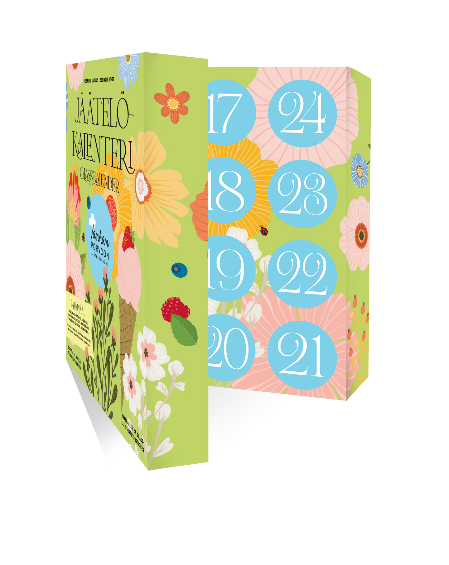 Kauan odotettu, kesäinen uutuus! Jäätelökalenterimme vie sinut maistuvalle matkalle kohti kesän ihanimpia hetkiä. Kalenterista löydät 24 eri makuista jäätelöä tai sorbettia 60 ml kokoisissa pikareissa. Herkuttele yksin tai yhdessä! Vanhan Porvoon Jäätelötehtaalla jäätelö syntyy paikallisia raaka-aineita kunnioittaen ja jokainen jäätelöerämme tehdään suurella rakkaudella sekä ammattiylpeydellä. Runsaan makuvalikoimamme ansiosta jokainen jäätelöhetkesi voi olla ainutlaatuinen ja yllättävä. Ole oman elämäsi artesaani ja ihastu iloisesti jäätelöihimme yhä uudestaan.