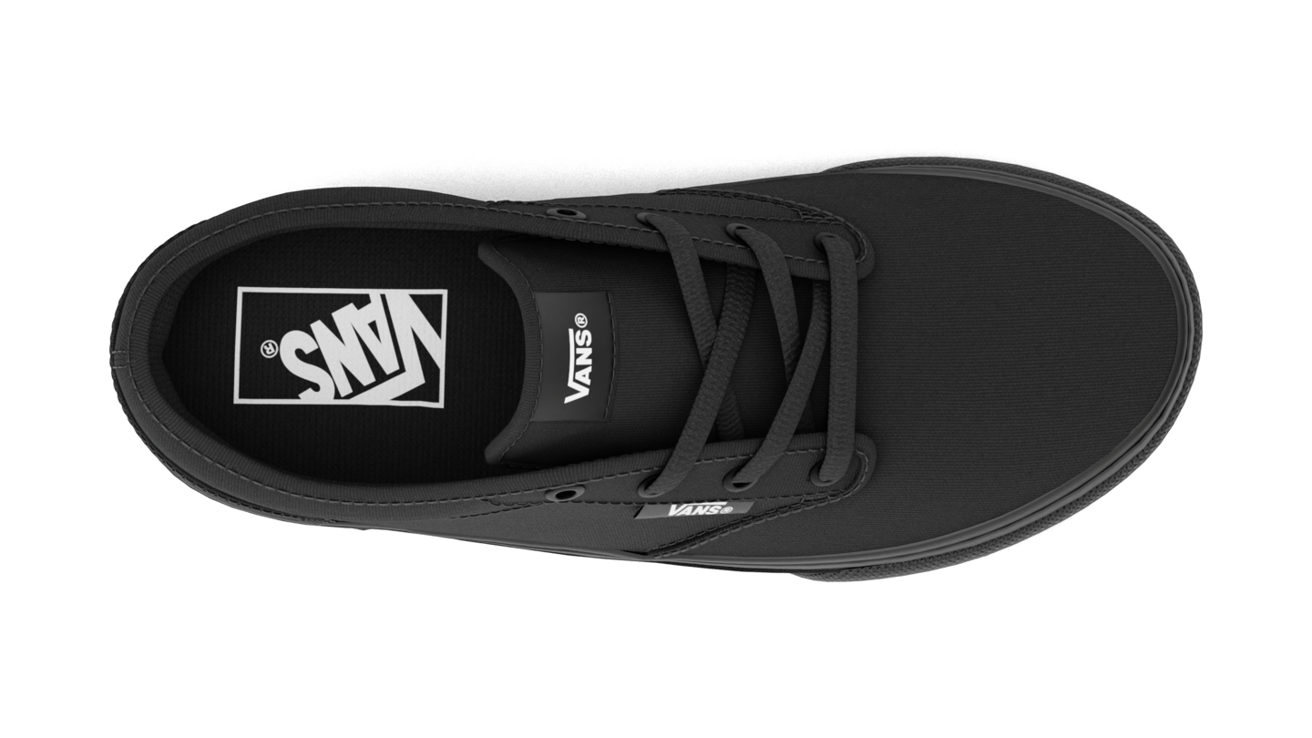 Lasten vapaa-ajan canvas jalkine. Siinä on nauha kiinnitys, matala varsi ja Vansin ikoninen vohvelikumipohja.