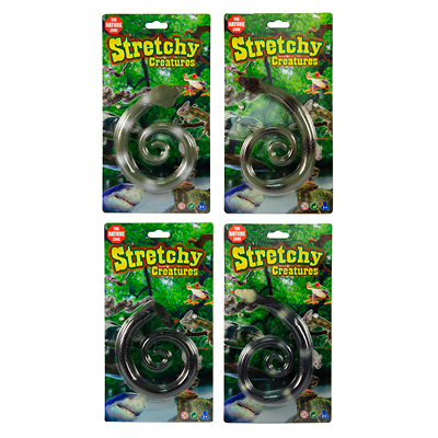 Pakkaus sisältää aidonnäköisen, venyvän käärmeen. Useita erilaisia. Ikäsuositus yli 3-vuotiaille.